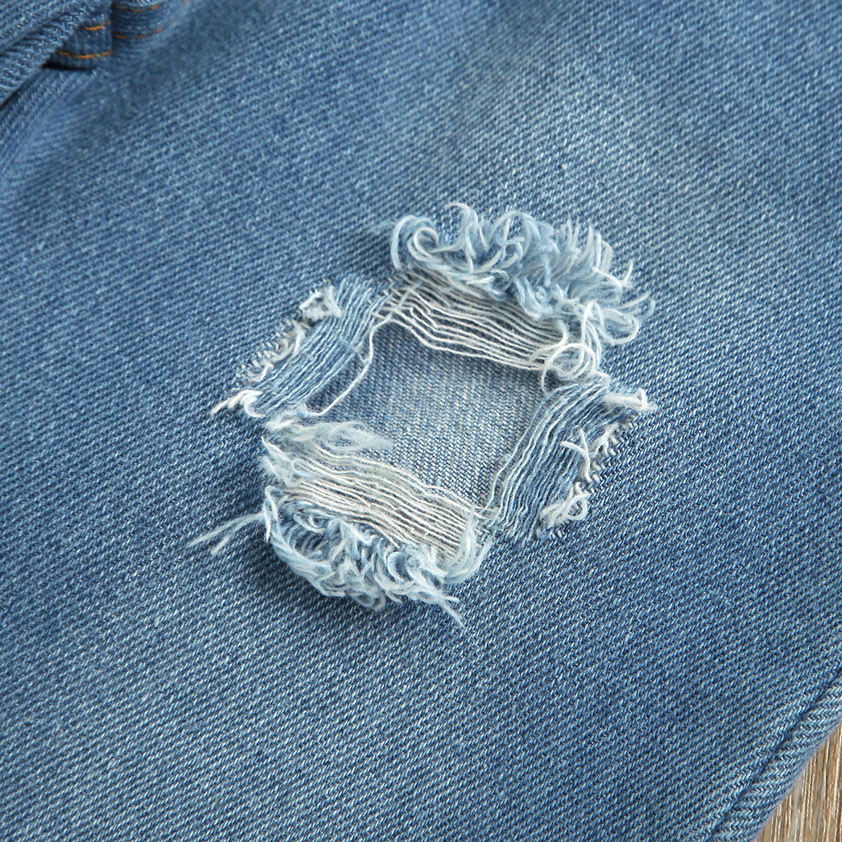 童装儿童夏牛仔套装女白色花边吊带上衣缀珠破洞牛仔长裤配发发带 English | 投诉
