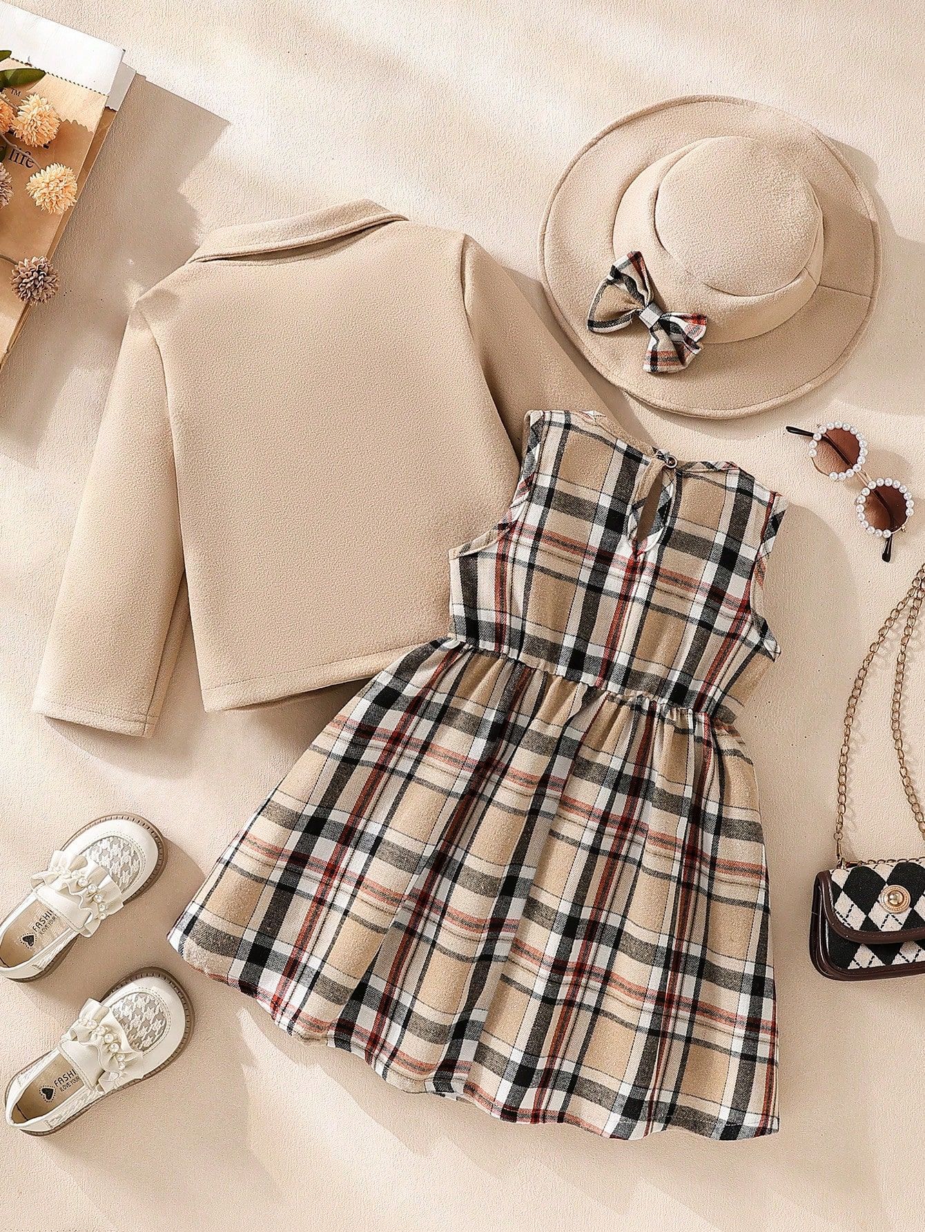 主面料成分: 聚酯纤维(涤纶) 适合年龄段: 中小童(3~8岁,100~140cm) 套装件数: 三件套 品牌: 0 厚薄: 加厚 面料名称: 人棉 袖长: 长袖 货号: A1015 货源类别: 现货 适用性别: 女 风格: 甜美 套装类型: 裙套装 礼盒内容: 服装 产地: 广东 适合季节: 冬季,秋季 是否连帽: 有帽可拆 图案: 格子,纯色 图片实拍: 实拍无模特 是否库存: 是 上市年份季节: 2025年秋季 重量: 0.5 kg/套