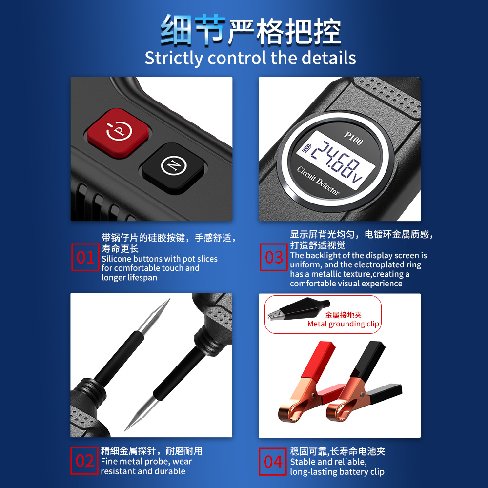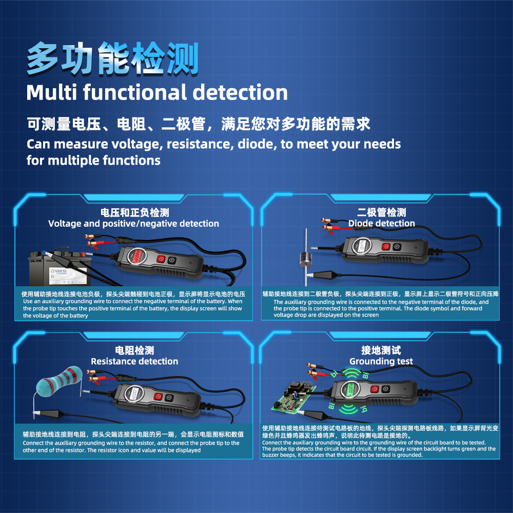 汽车摩托卡车电路检测电压电阻二极管短路测试 汽车检测仪P100