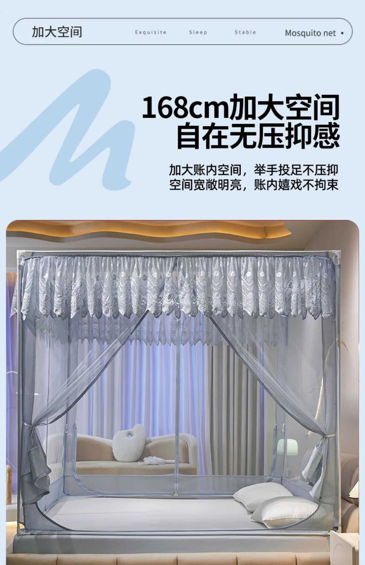 | 适用1.5m床-宽150*长200*高170【加粗加厚自连接支架+风扇杆+防尘顶 | ¥18439 | 999999件可售 |