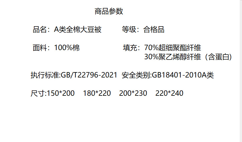 | 双人被2.2*2.4米-9斤(适合10度左右) | ¥19500 | 111111床可售 |