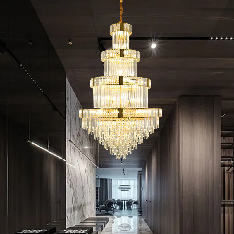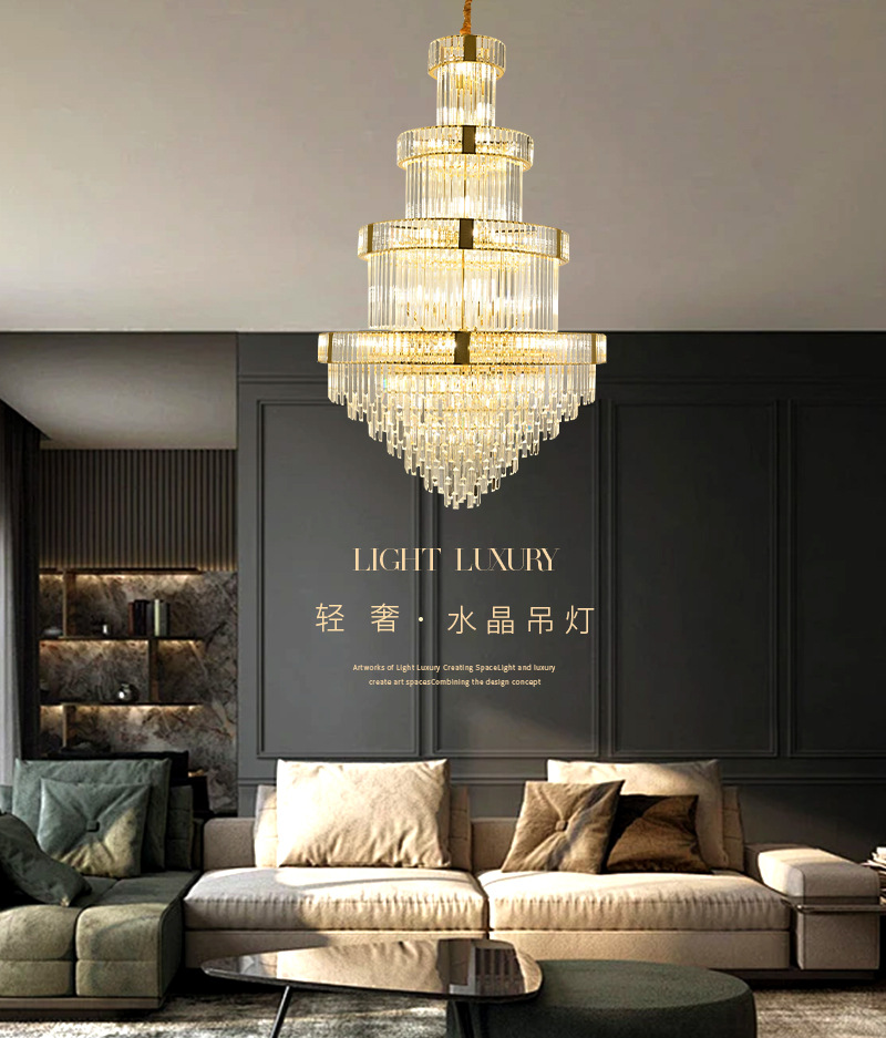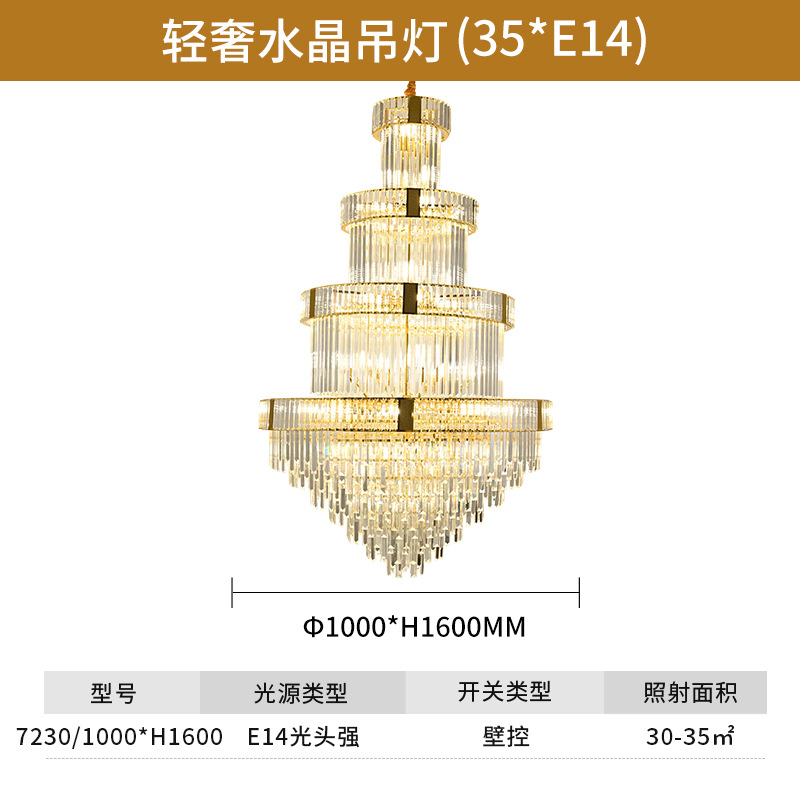 客厅水晶吊灯复式楼别墅港式轻奢中空挑高楼中楼餐厅酒店楼梯间灯