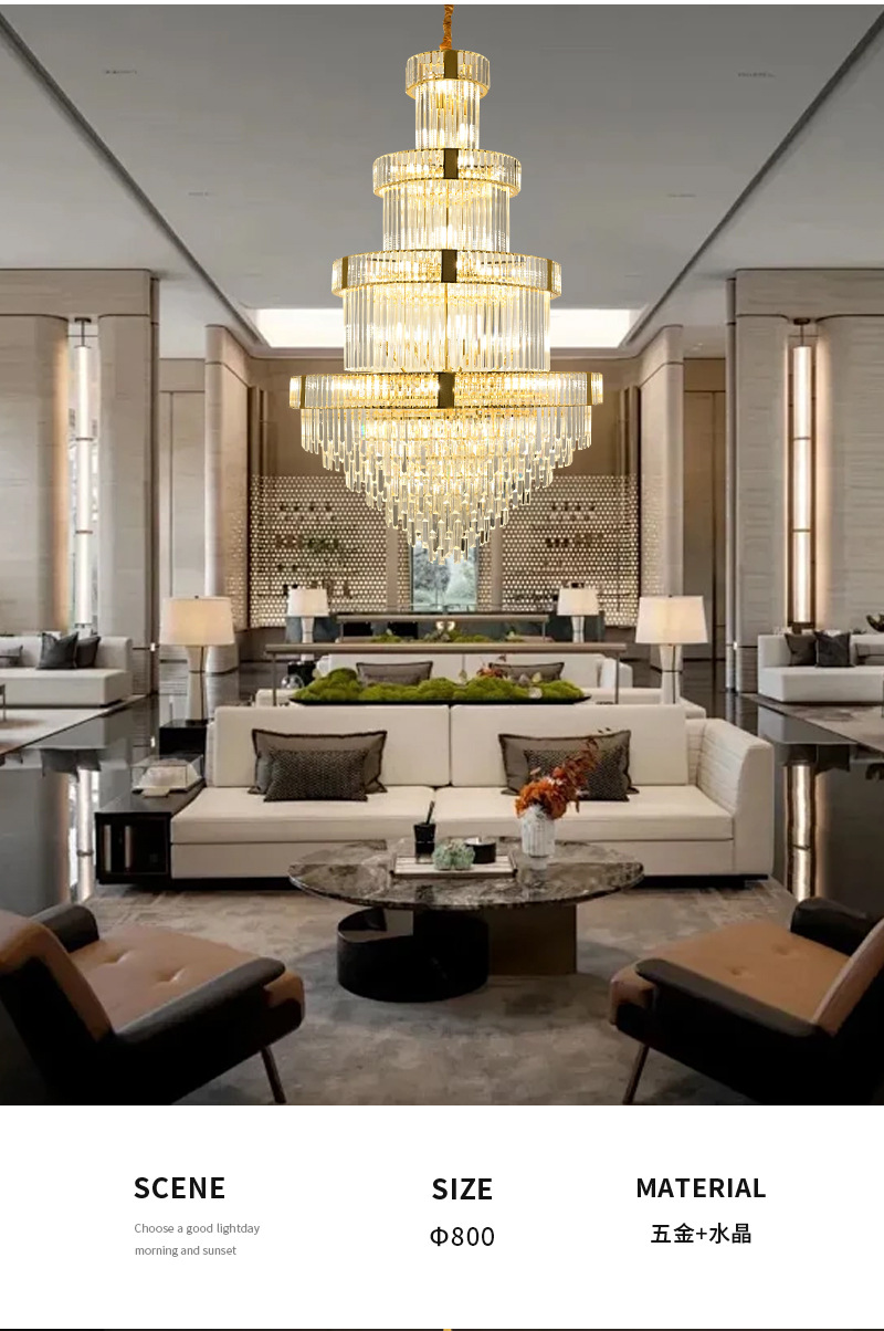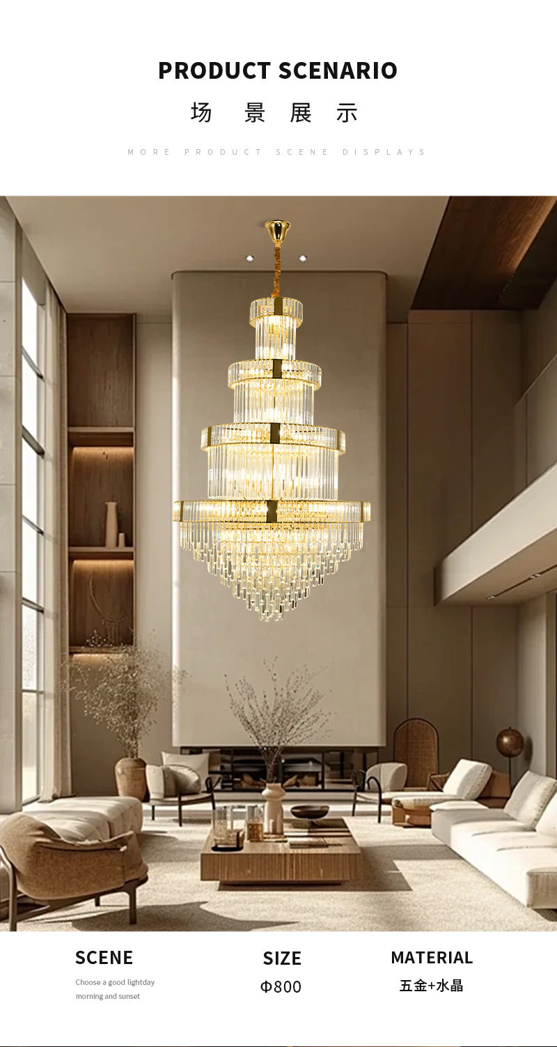 客厅水晶吊灯复式楼别墅港式轻奢中空挑高楼中楼餐厅酒店楼梯间灯 投诉