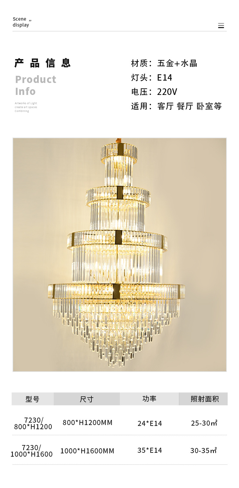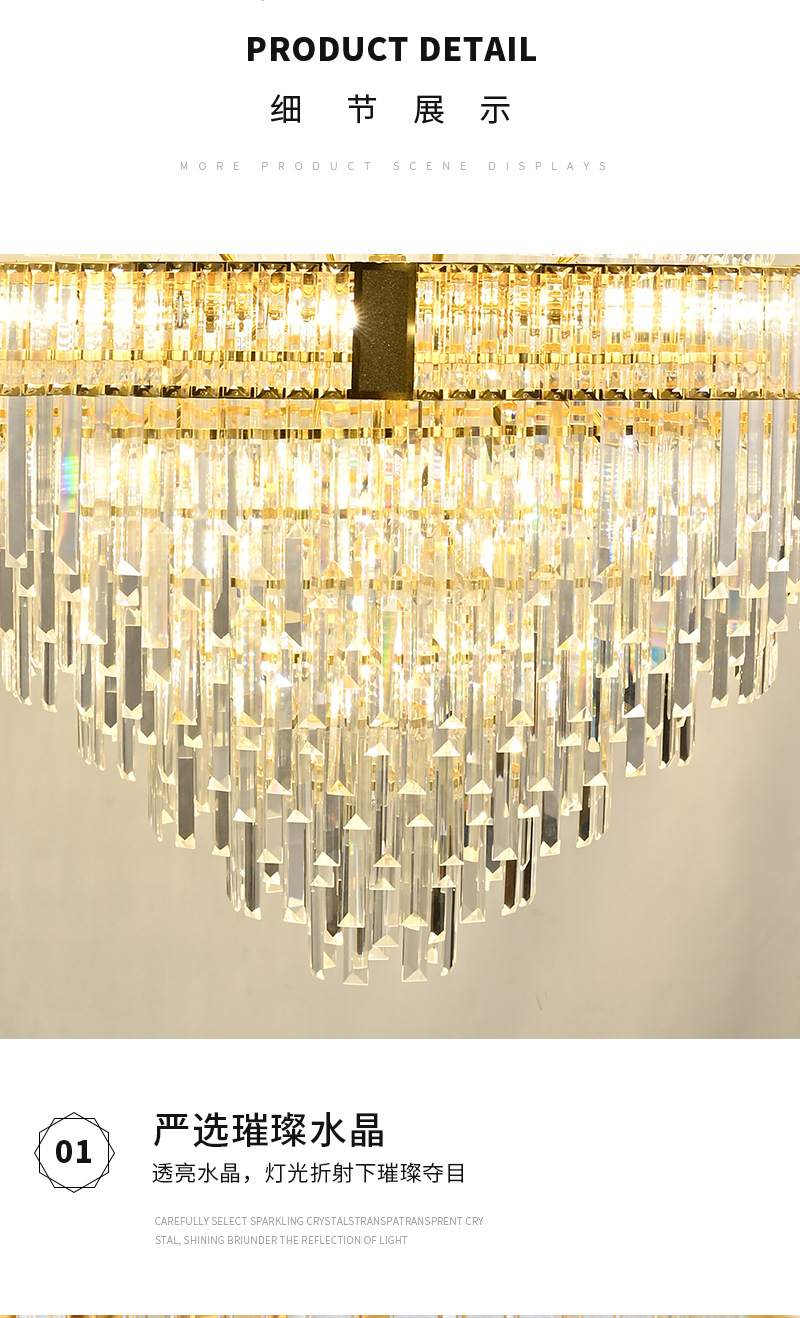 光源类型: 白炽灯 头数: 多头吊灯 灯身材质: 五金 智能类型: 其他 品牌: 云羽照明 电压: ≤36V 风格: 轻奢 吊灯类型: 水晶吊灯 认证: 无 货号: 7230 灯光颜色: 800*H1200,1000*H1600 照射面积: 15㎡ -30㎡ 是否跨境出口专供货源: 是 主要下游平台: ebay,亚马逊,wish 主要销售地区: 东南亚,东北亚,中东 是否配送上门: 不配送上门 是否有专利: 否 适用场景: 家居场所 是否可提供安装服务: 否 产地: 中山