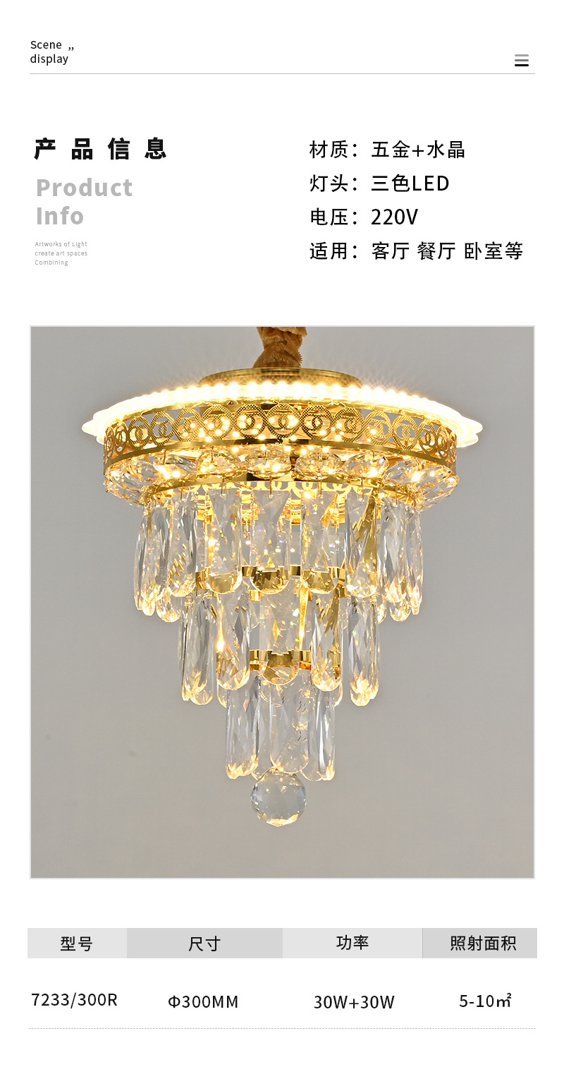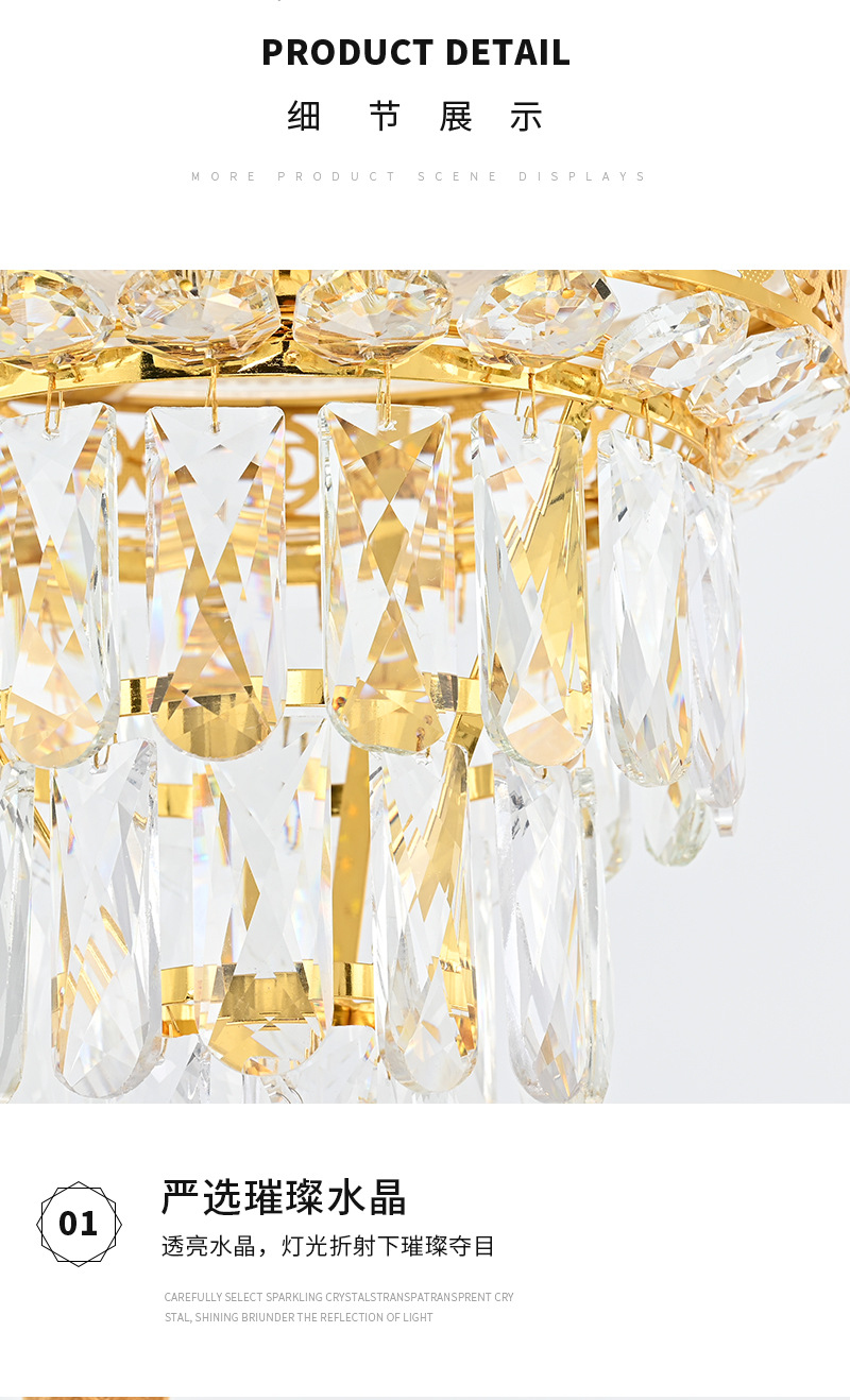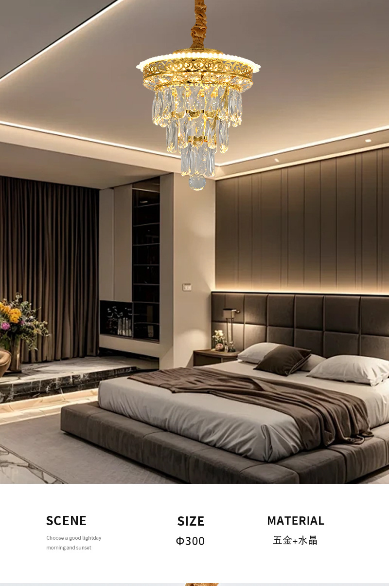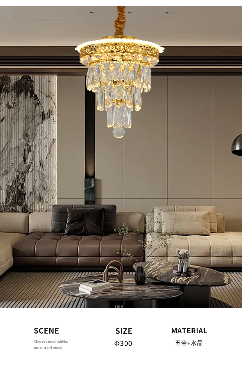 光源类型: 白炽灯 头数: 多头吊灯 灯身材质: 五金 智能类型: 其他 品牌: 云羽照明 电压: ≤36V 风格: 轻奢 吊灯类型: 水晶吊灯 认证: 无 货号: 7233 灯光颜色: 直径300 照射面积: 10㎡ -15㎡ 是否跨境出口专供货源: 是 主要下游平台: ebay,亚马逊,wish 主要销售地区: 东南亚,东北亚,中东 是否配送上门: 不配送上门 是否有专利: 否 适用场景: 家居场所 是否可提供安装服务: 否 产地: 中山