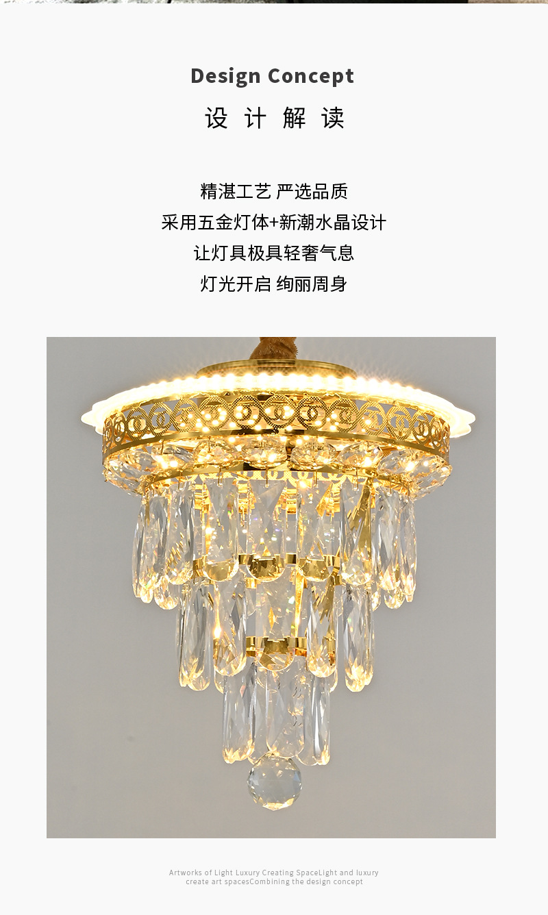 欧式水晶小吊灯美式轻奢过道灯走廊阳台灯玄关楼梯衣帽间灯门厅灯 投诉