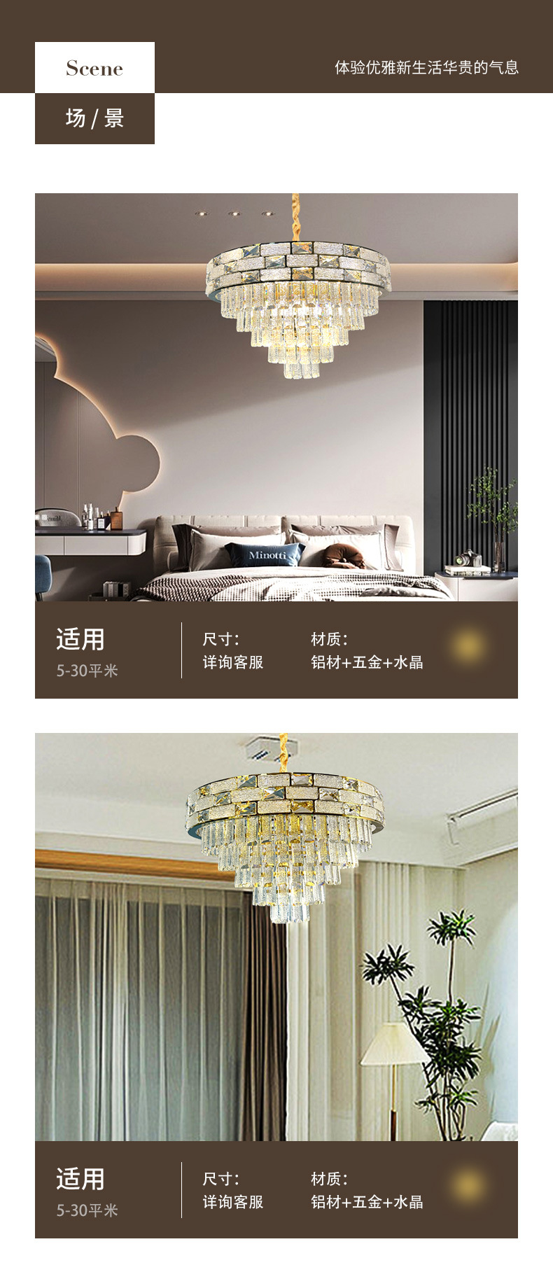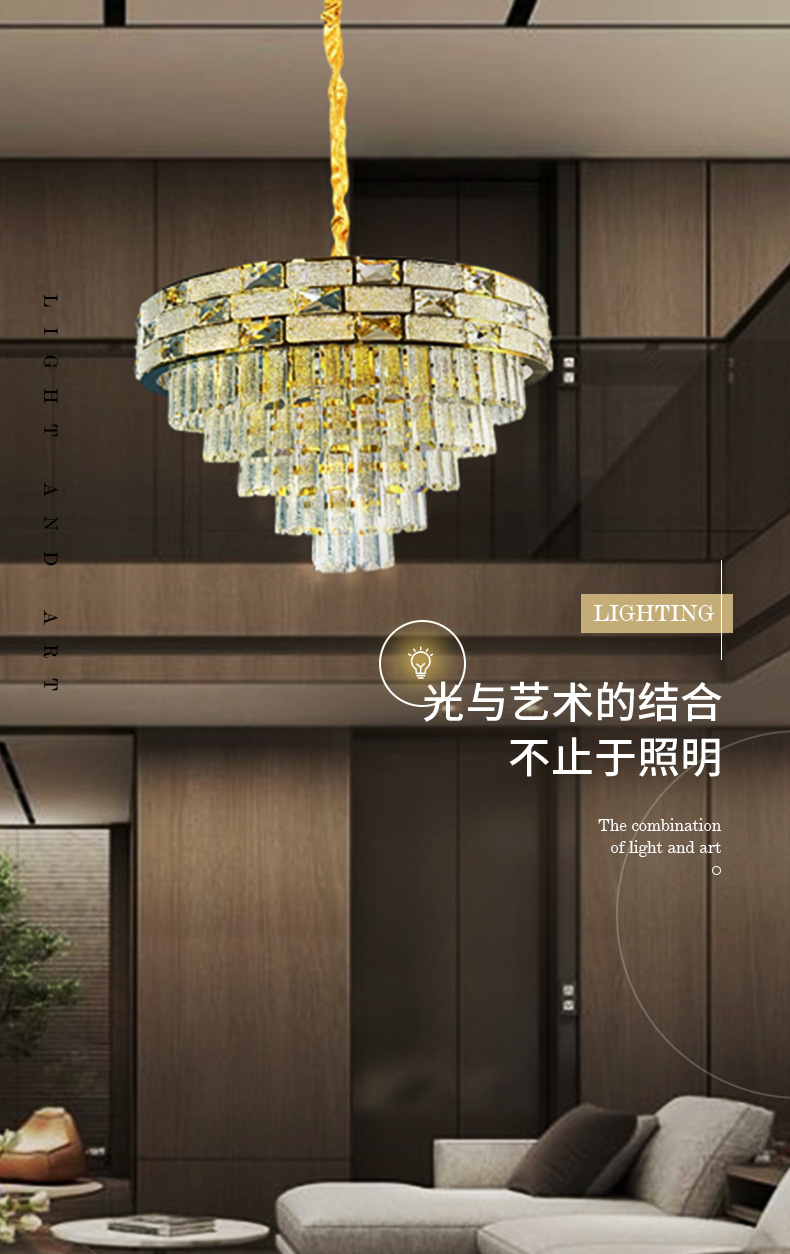 工厂批发轻奢餐厅客厅吊灯大厅照明主灯别墅吊灯LED奢华水晶灯