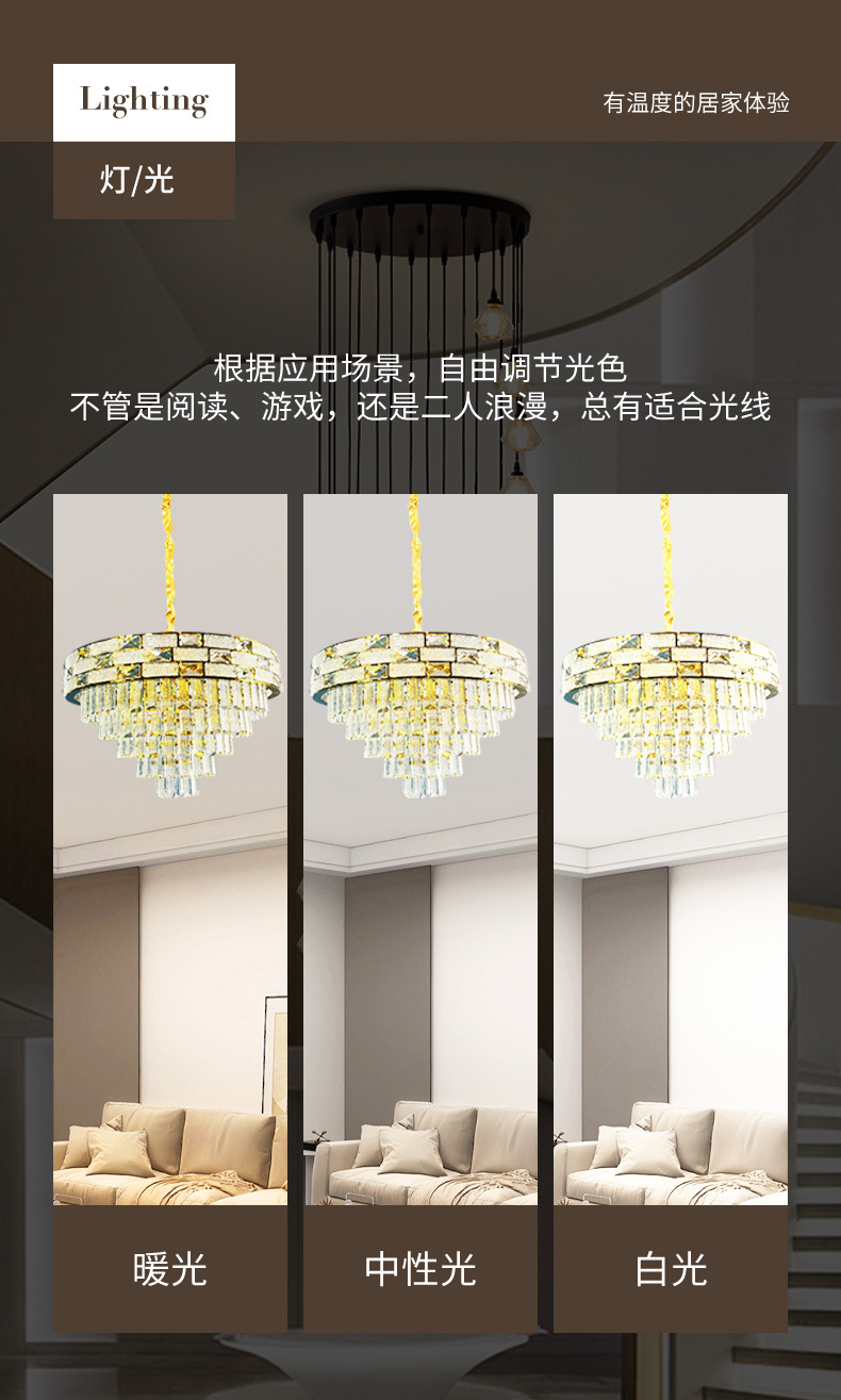 工厂批发轻奢餐厅客厅吊灯大厅照明主灯别墅吊灯LED奢华水晶灯 投诉