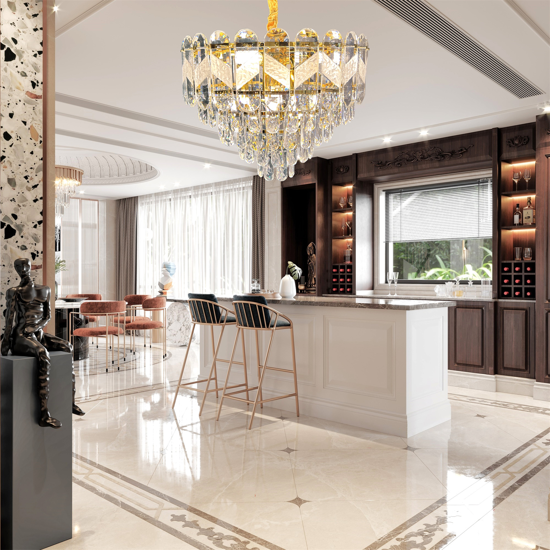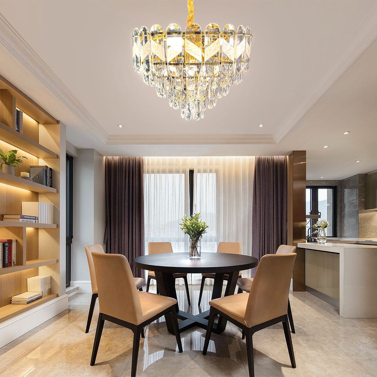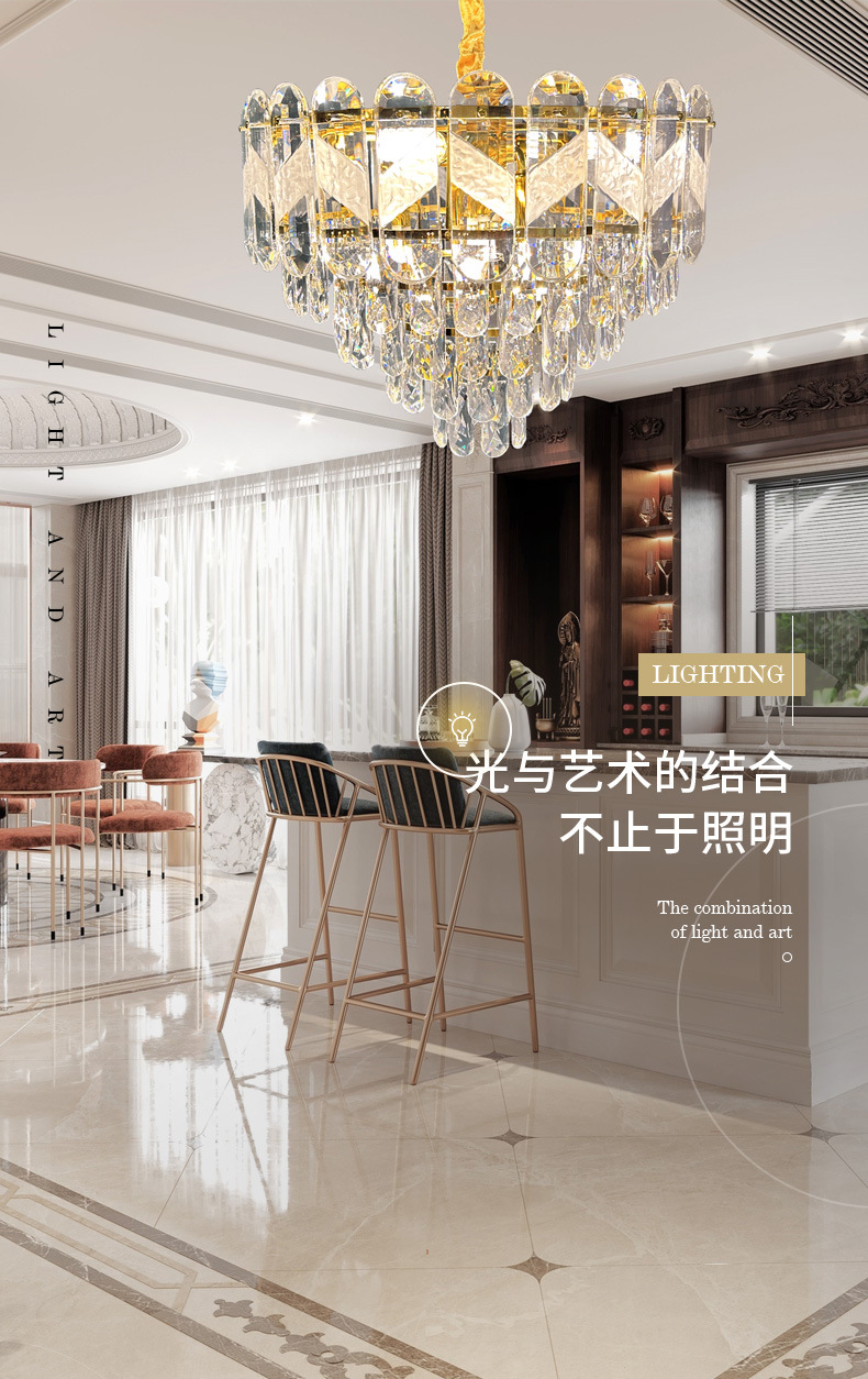简约后现代金色水晶灯LED灯客厅餐厅灯卧室吊灯创意家居灯饰批发