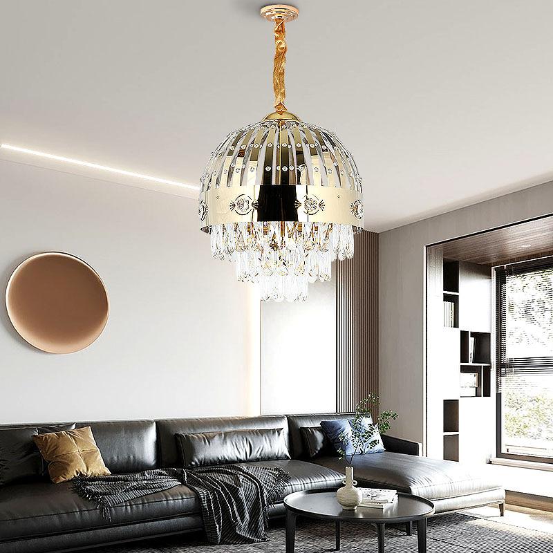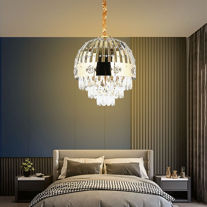 欧式抛光铜罩K9水晶吊灯气复式楼餐厅主卧室饭厅水晶灯饰别墅灯具