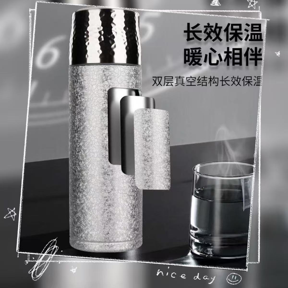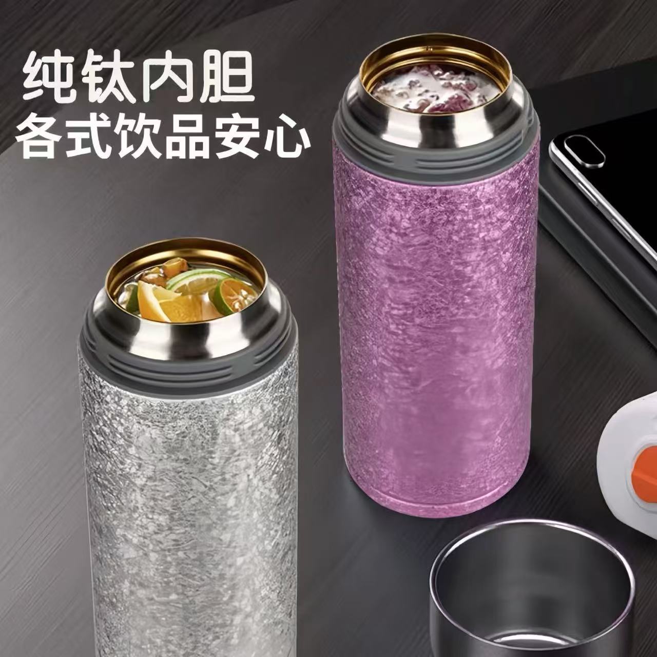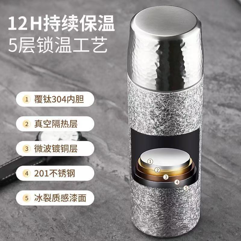 新款保温杯高颜值锤纹杯真空双层便携养生钛杯商务礼品赠送轻奢杯 English | 投诉