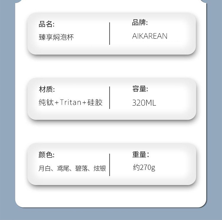 内胆材质: 纯钛 品牌: Aikarean 功能: 加厚,常规,家用,便携,真空,保温,防异 保温性能: 12-24小时 外壳材质: 钛金 货号: 四合一定制1 样式: 子弹头,大容量,直身杯,带茶漏 材质: 内外纯钛 风格: 现代简约 是否进口: 否 是否有专利: 否 是否跨境出口专供货源: 否 版权: 无 是否属于礼品: 是,商务礼品 送礼用途: 广告礼品,促销赠品,会议礼品,福利礼品, 适用节日: 春节,父亲节,母亲节,教师节,元旦,七夕 适用送礼关系: 晚辈,情侣,夫妻,同事,朋友,长辈,孩子 适用送礼场合: 旅游纪念,毕业,乔迁,派对聚会,探病慰问 产品上市时间: 2025年秋 产品质量等级: 一等品