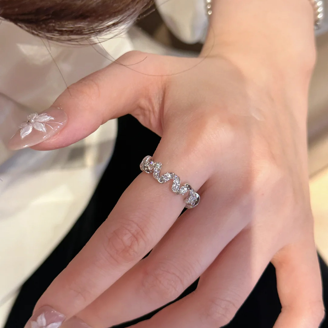 时尚轻奢通勤经典精致气质满钻电话线缠绕戒指设计感锆石指环女 English | 投诉