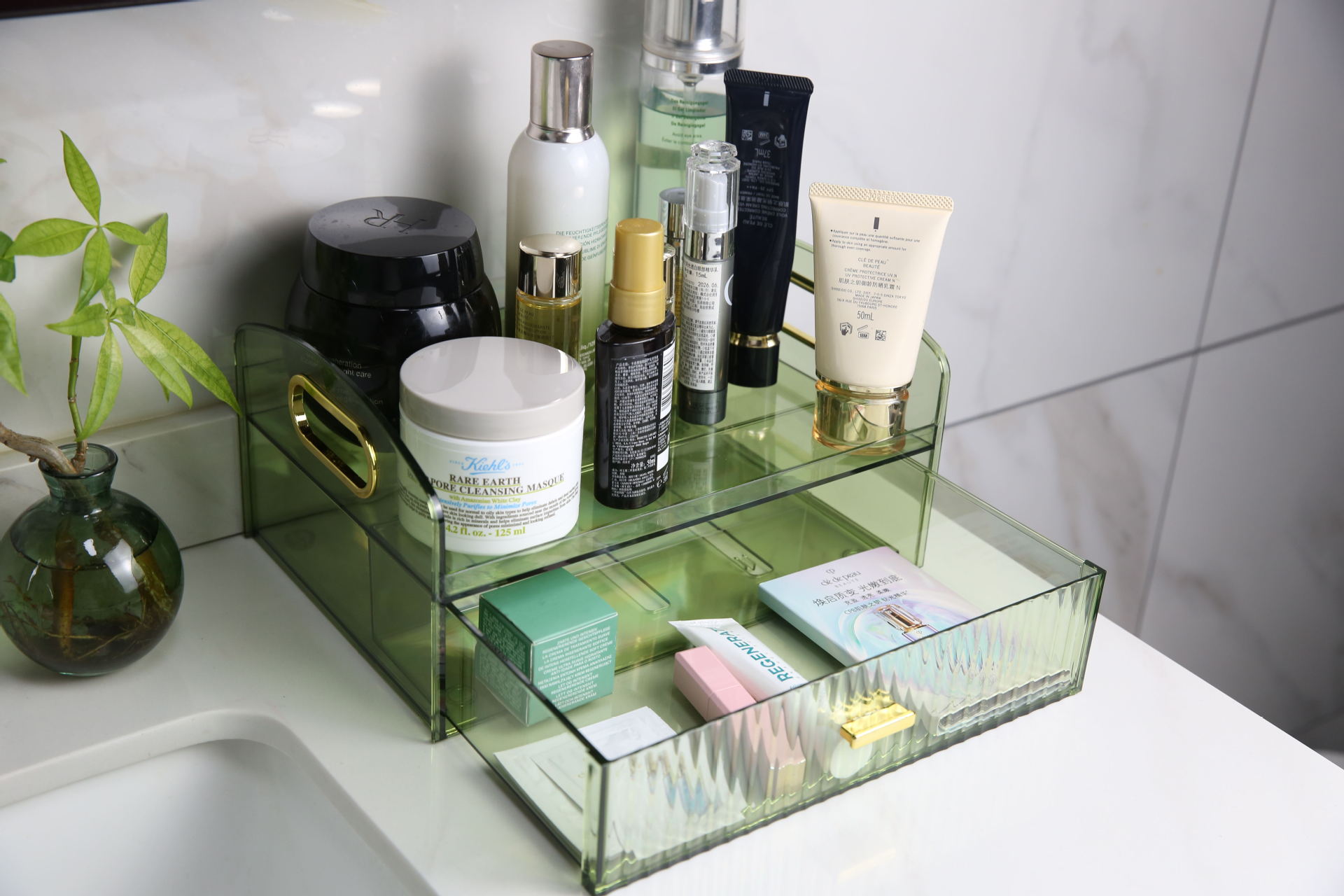尚优家桌面家用手提便捷储物盒口红面膜护肤品抽屉式化妆品收纳盒