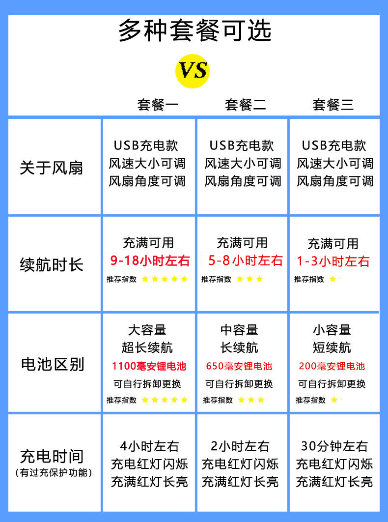 | 套餐3(USB充电)续航1-3小时 | ¥2390 | 422顶可售 |