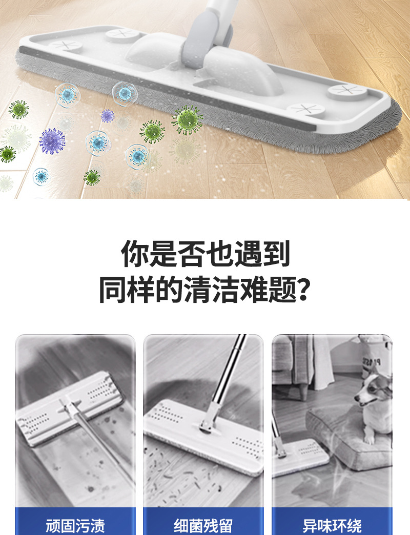 拖布材质: 超细纤维 拖把杆材质: 不锈钢 驱动类型: 单驱动 挤水方式: 喷水拖把 品牌: - 是否进口: 否 使用寿命: 1-2年 伸缩长度: 120cm 夹板尺寸: 40*12cm 拖把杆的承重: 2kg 价格段: 10元-19.9元 产地: 河北霸州 外箱规格: 63*45*68 箱装数量: 30 包装重量: 约650g 专利: 否 产品上市时间: 2025 主要下游平台: ebay,亚马逊,wish,速卖通,独立 主要销售地区: 非洲,欧洲,南美,东南亚,北美,东北亚, 有可授权的自有品牌: 否