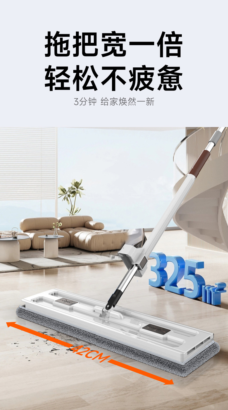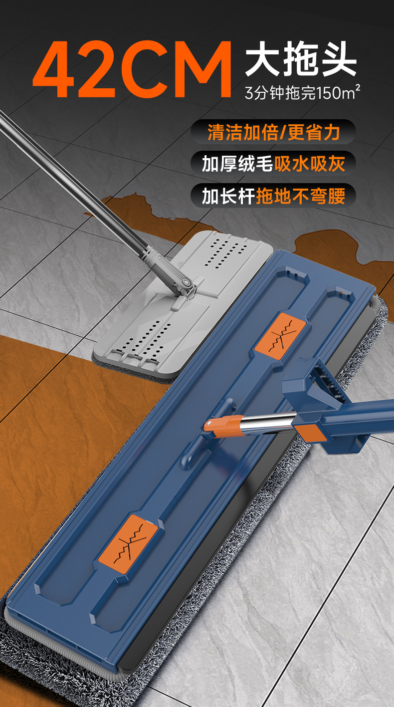 懒人平板拖把42CM免手洗拖把平板拖把厂家新款平板拖把拖把布收纳 English | 投诉