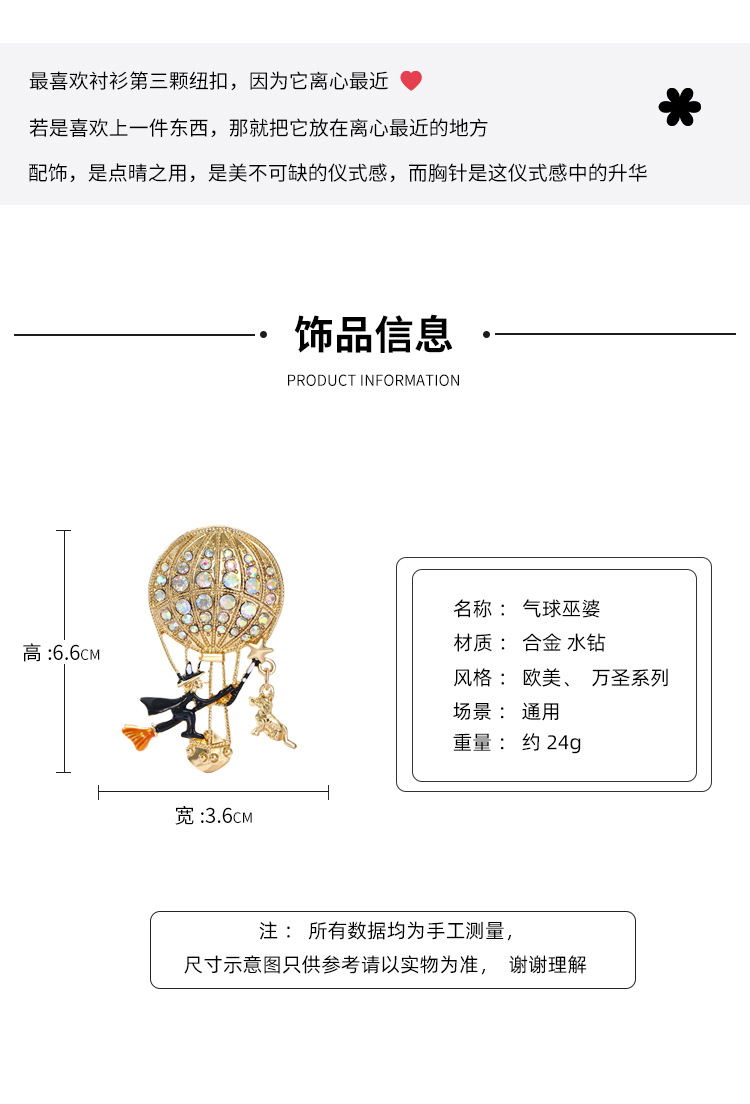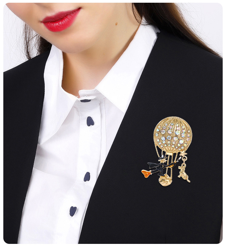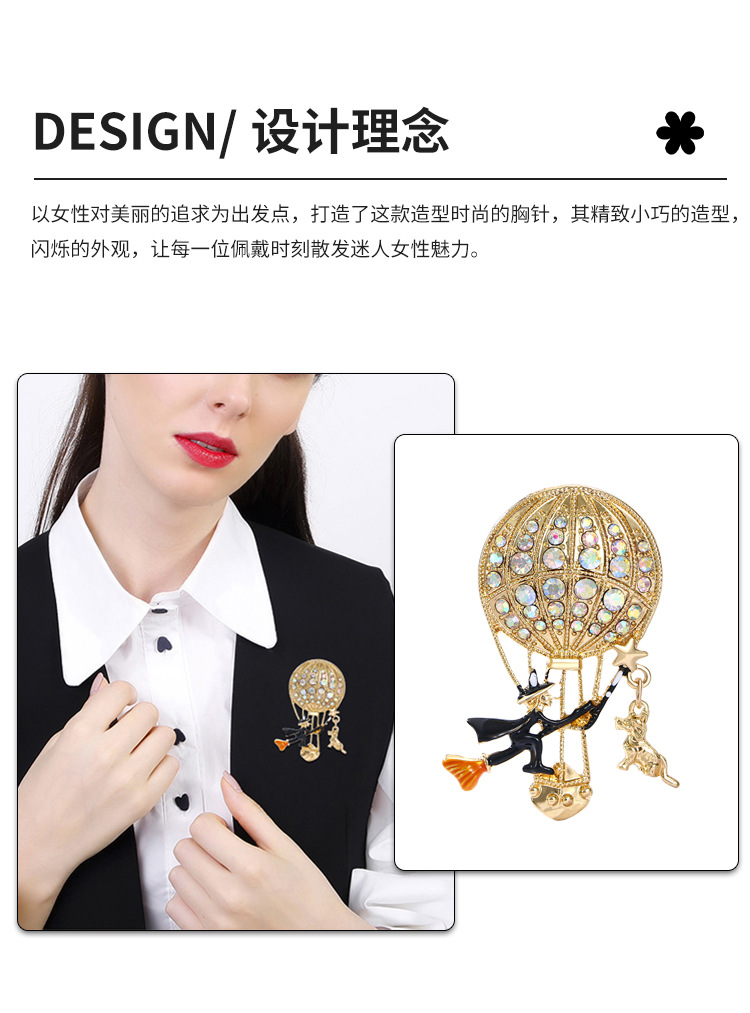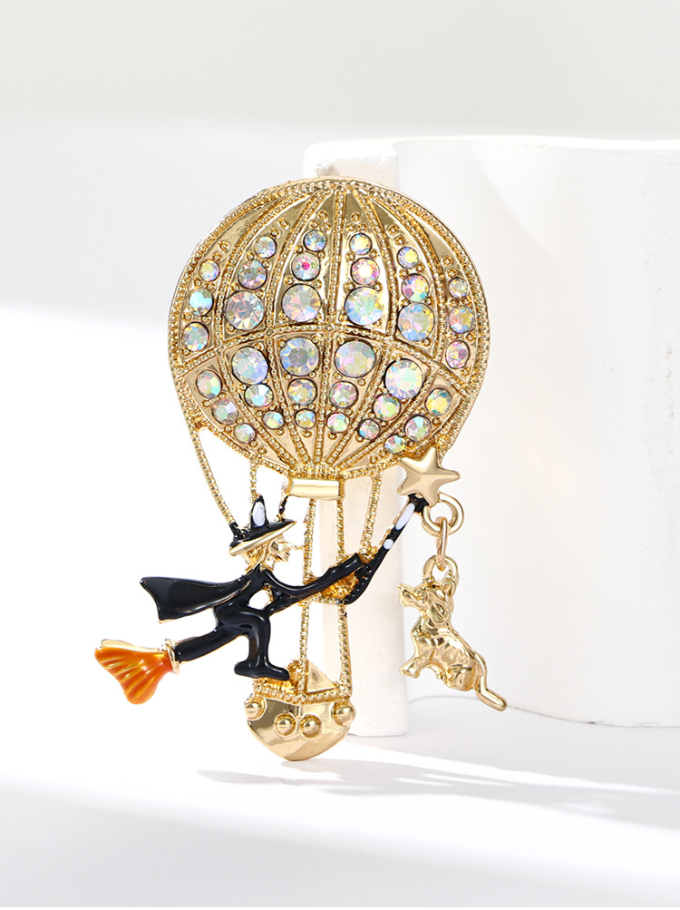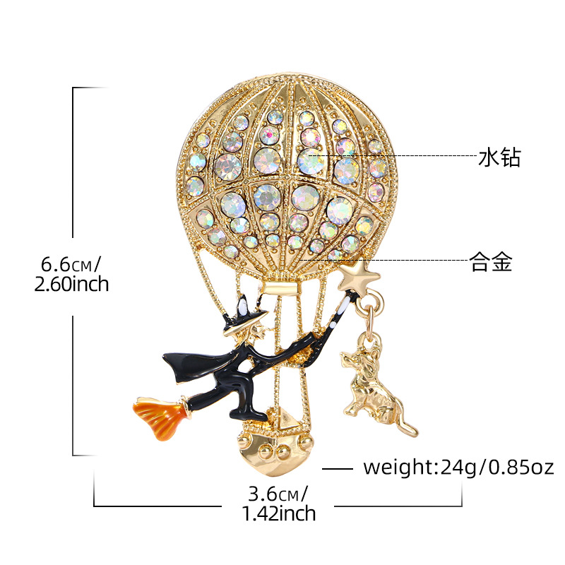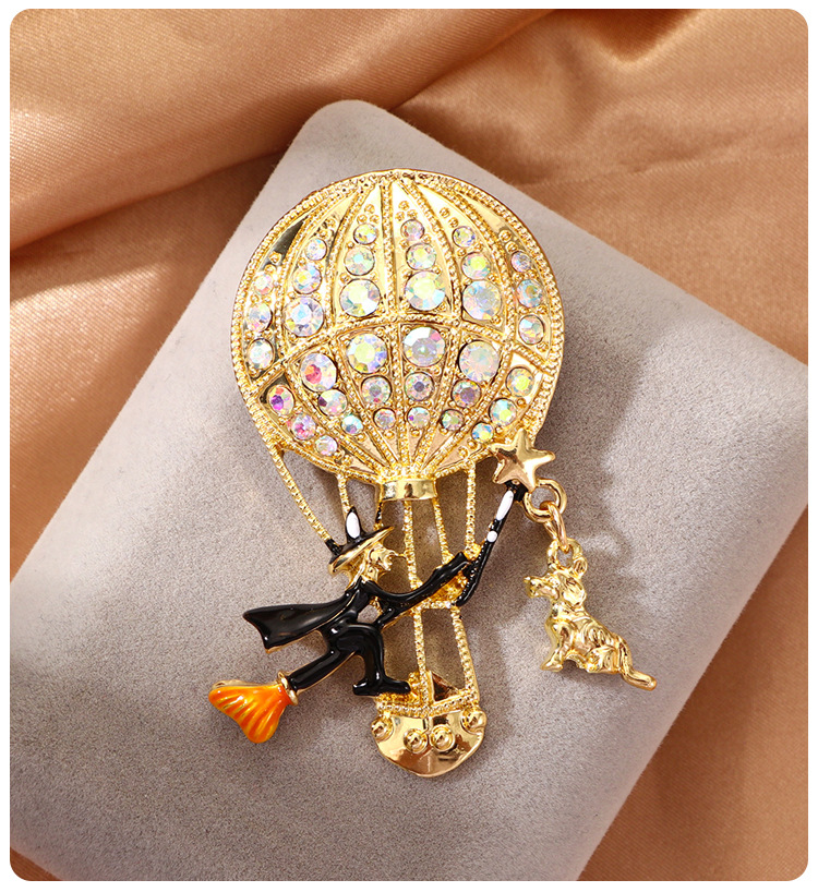 新款万圣节女巫胸针气质高级感高档镶钻热气球胸花别针衣饰配饰品 English | 投诉