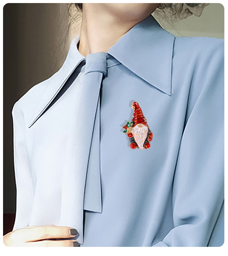 新款跨境欧美圣诞老人胸针珐琅彩可爱胸花别针饰品防走光女士配饰 English | 投诉
