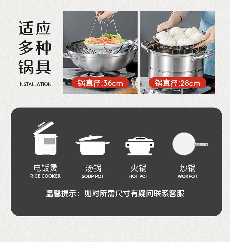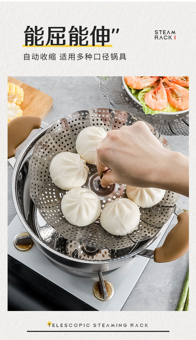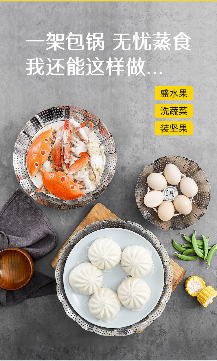 多功能不锈钢篦子伸缩蒸笼家用蒸屉包子小蒸笼多功能蒸菜盘蒸鱼架 English | 投诉