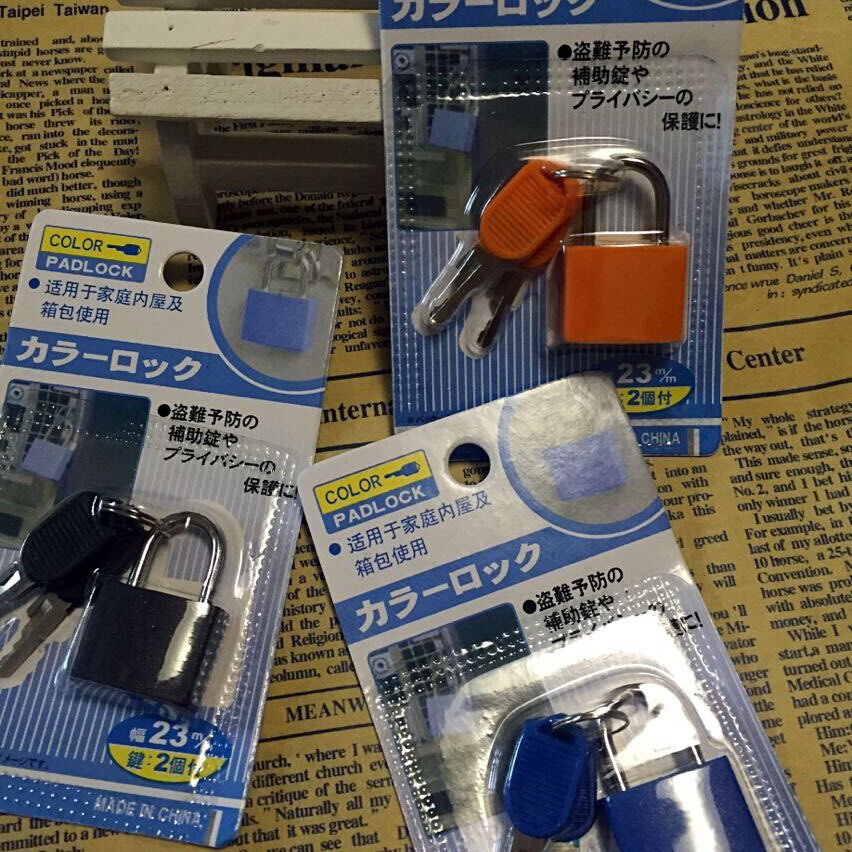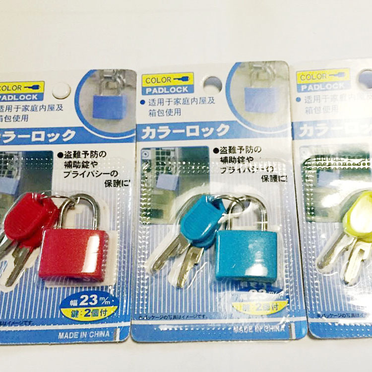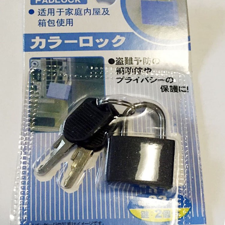 本司供应包塑小挂锁,规格有23mm 28mm 33mm 42mm 。锁体为锌合金,锁体外包ABS塑料,有多种颜色可供选择。