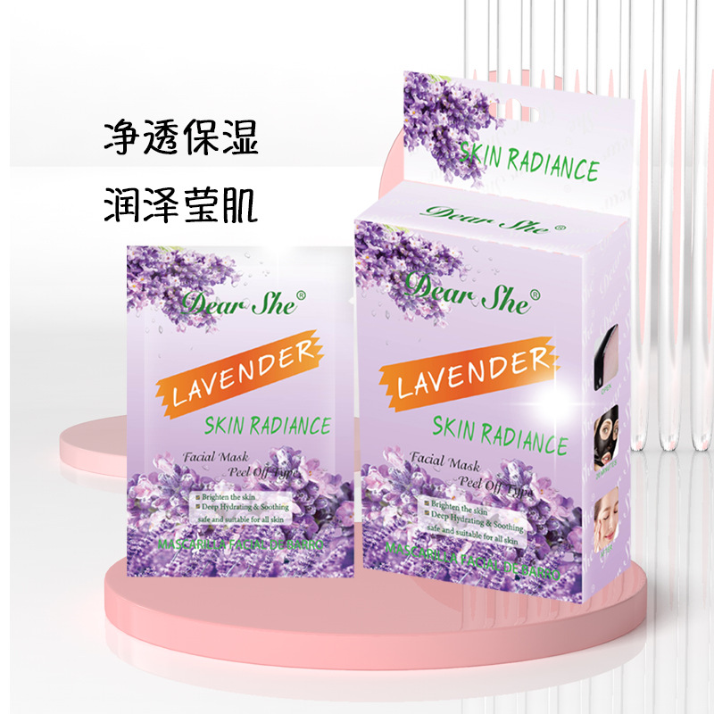 Dear She跨境外贸涂抹式清洁泥膜补水保湿便携式全英文薰衣草泥膜