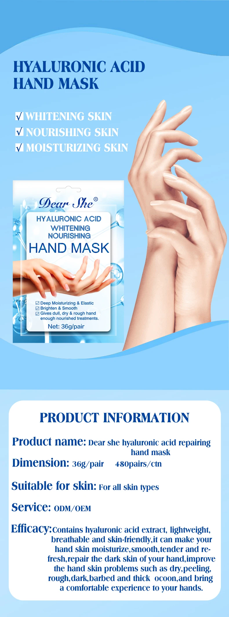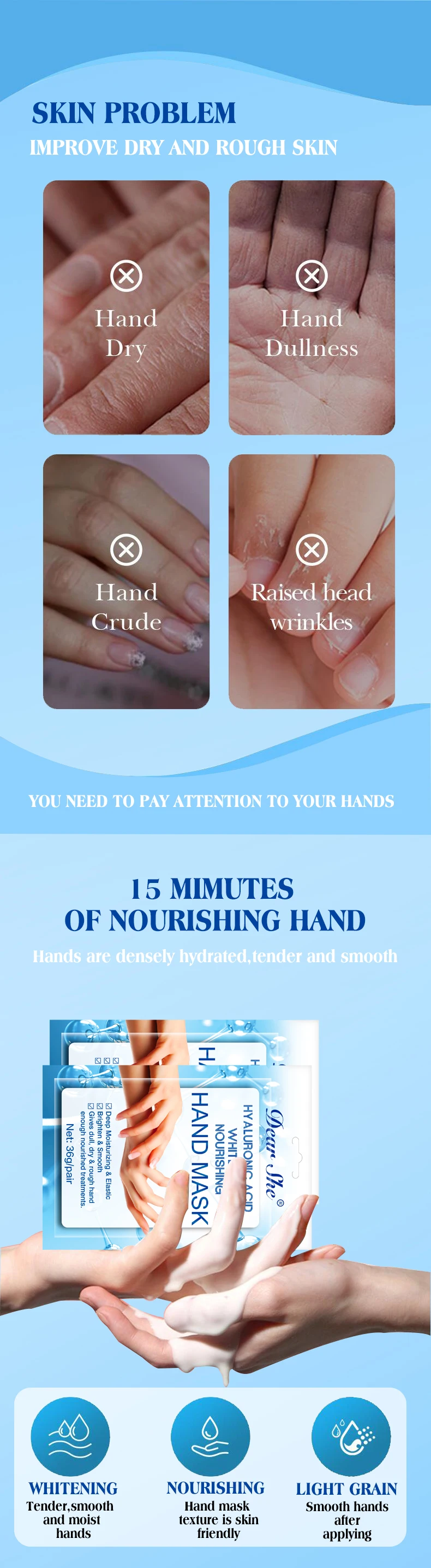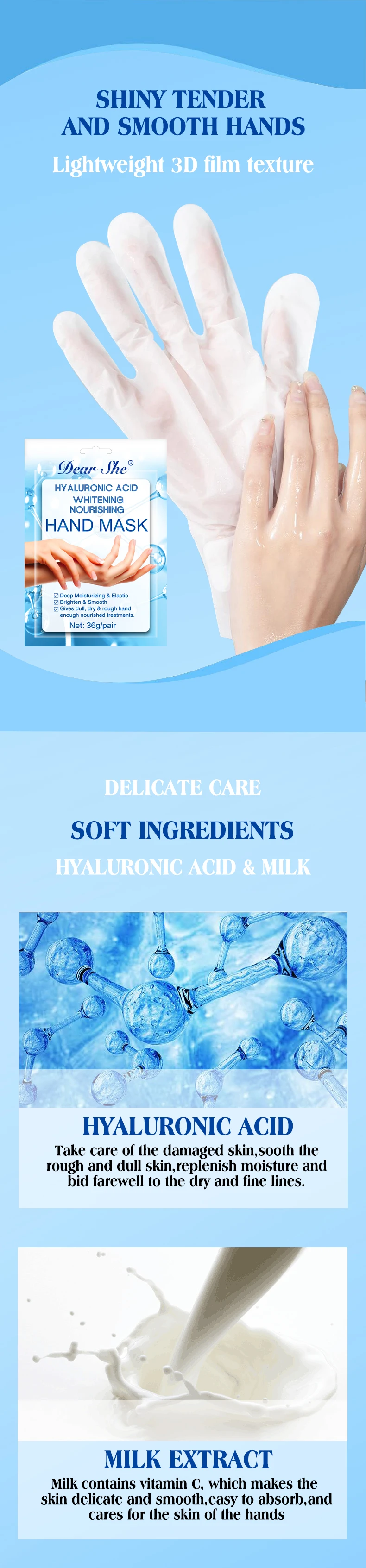 DEAR SHE玻尿酸手膜手膜手套保湿补水细纹手部护手霜滋润嫩肤