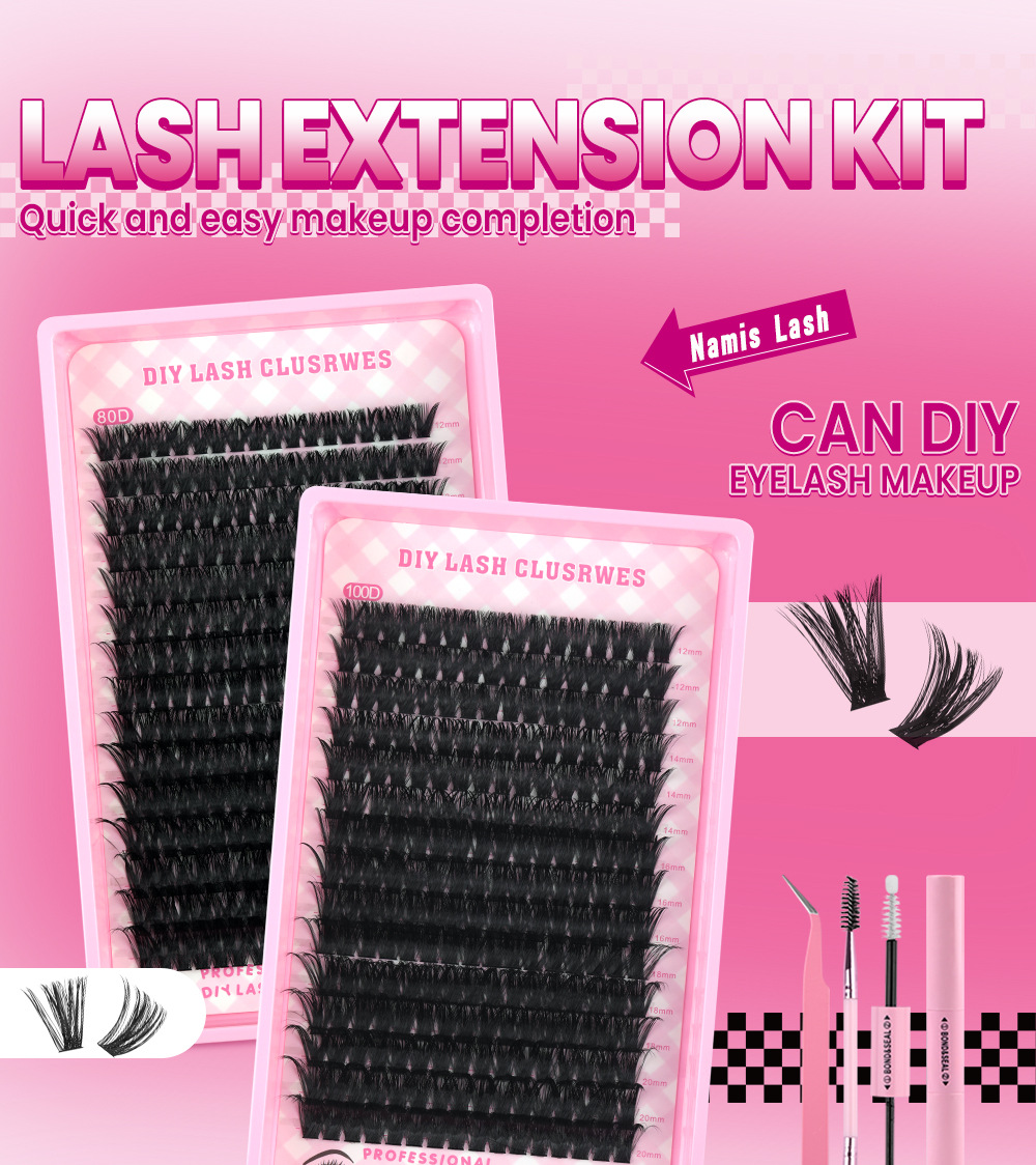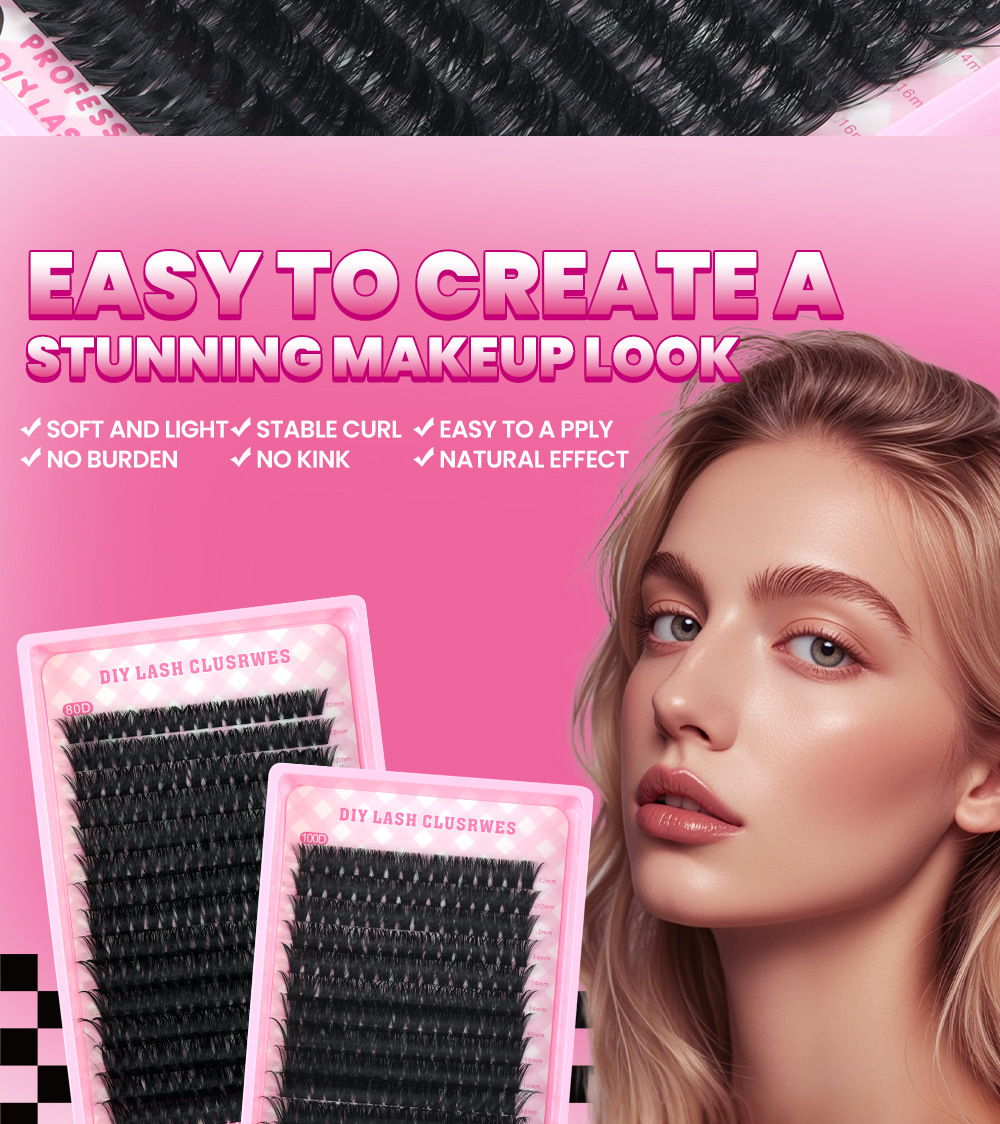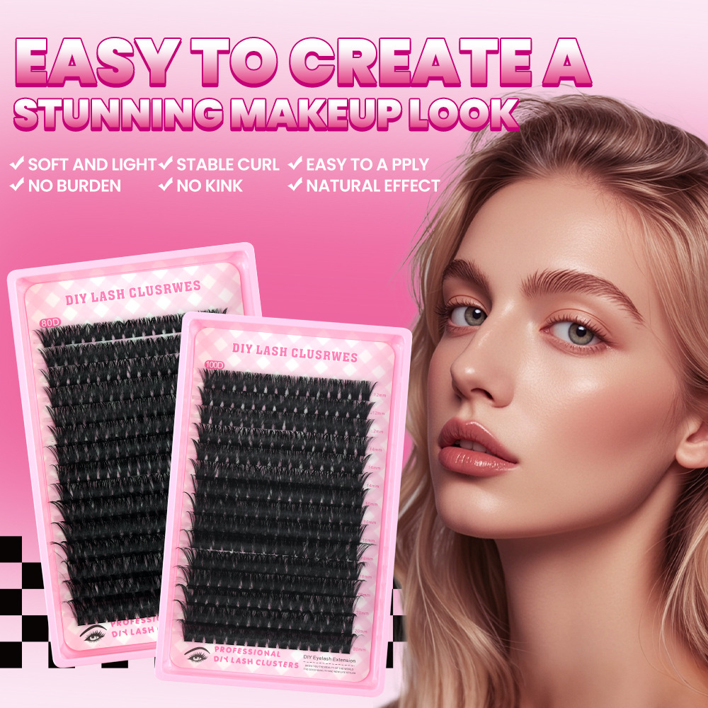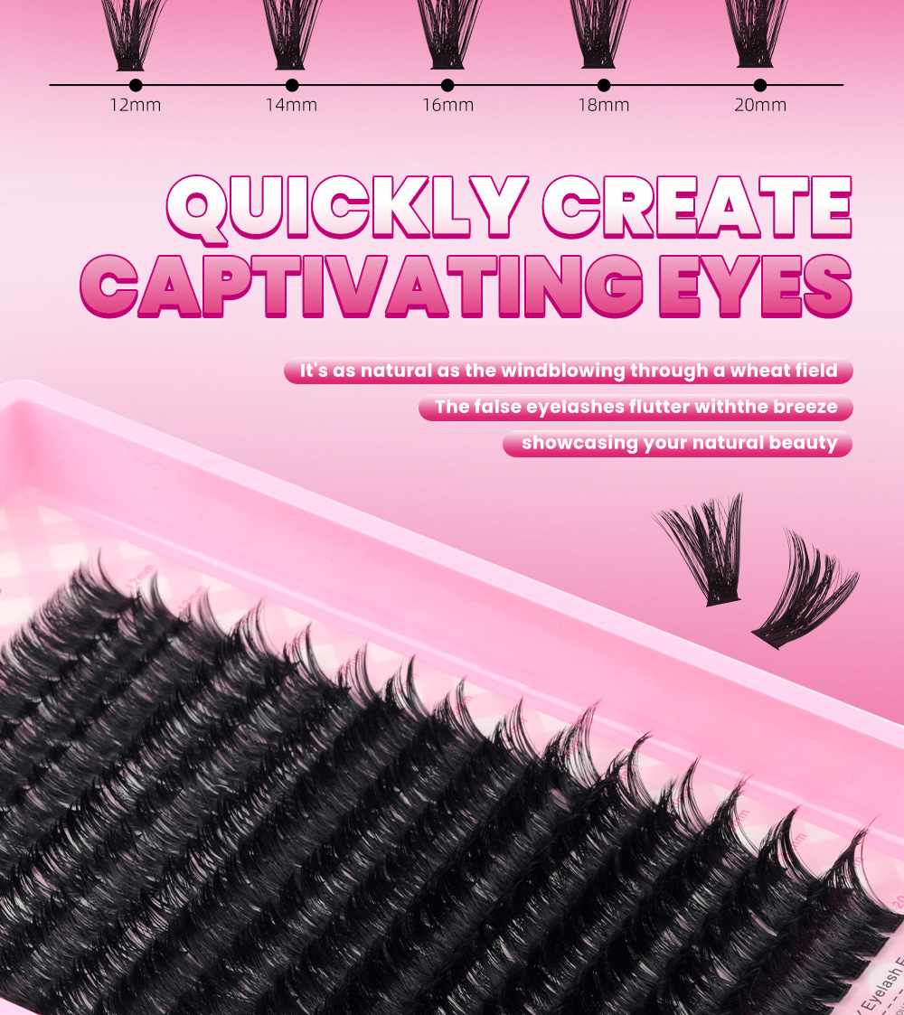 跨 境80D100DD曲单簇假睫毛浓密卷翘嫁接12-20mmDIY分段朵毛分段