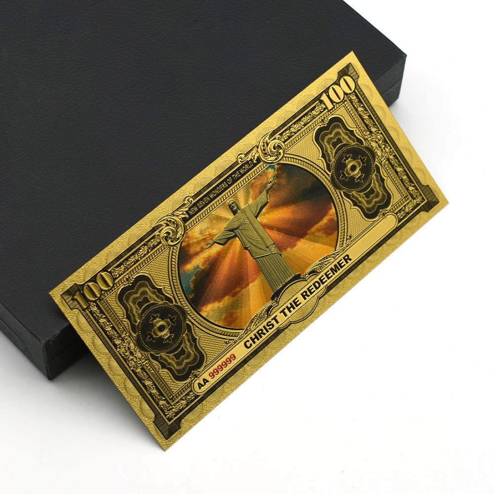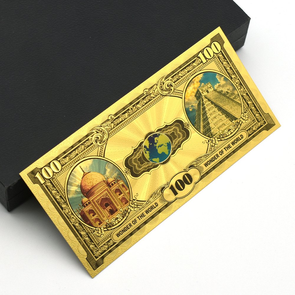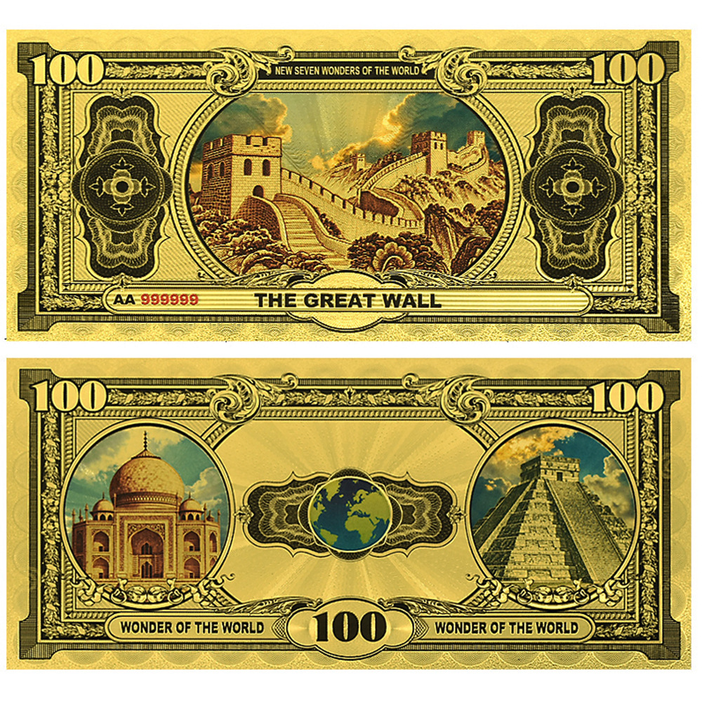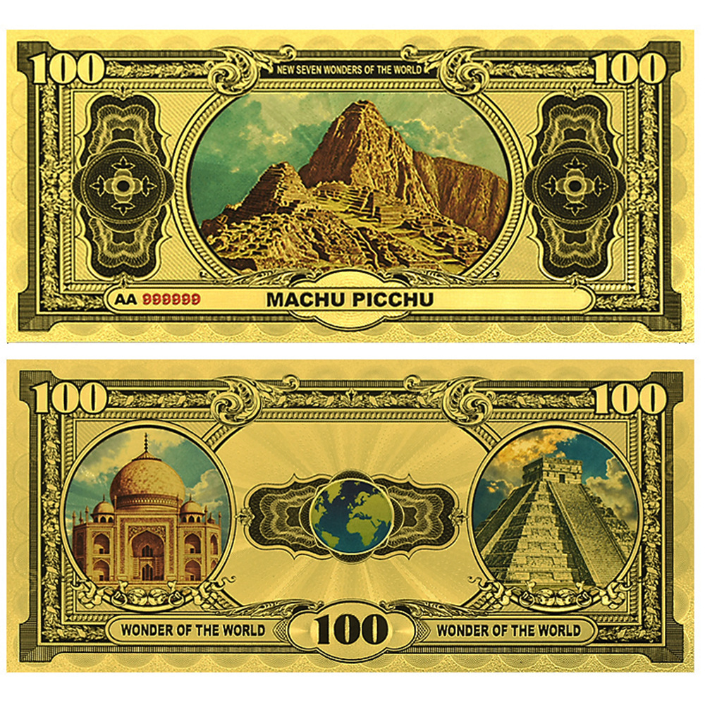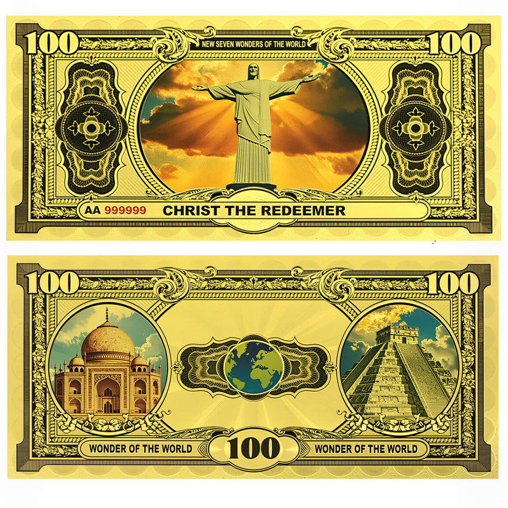 ✅ 7款世界七大奇迹经典图案风格UV 复古风格金箔纸币,细节丰富