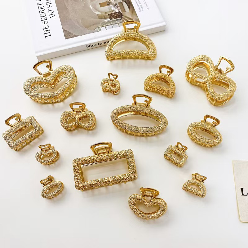 材质: 金属 品牌: 其他 发夹分类: 抓夹 流行元素: 金属 风格: 可爱 处理工艺: 电镀 货号: 006 样式: 儿童 造型: 几何 产地: 义乌 颜色: 长方形,半圆形,椭圆形,8字形,爱心 是否跨境出口专供货源: 是 上市年份/季节: 2024年夏季 风格分类: 清新甜美 生产编号: x676 适用人群: 儿童 流行元素分类: 无 重量: 0.2 kg/个