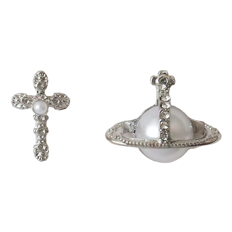 美甲饰品西太后同款土星珍珠十字架镀指甲珍珠钻美甲饰品爆款