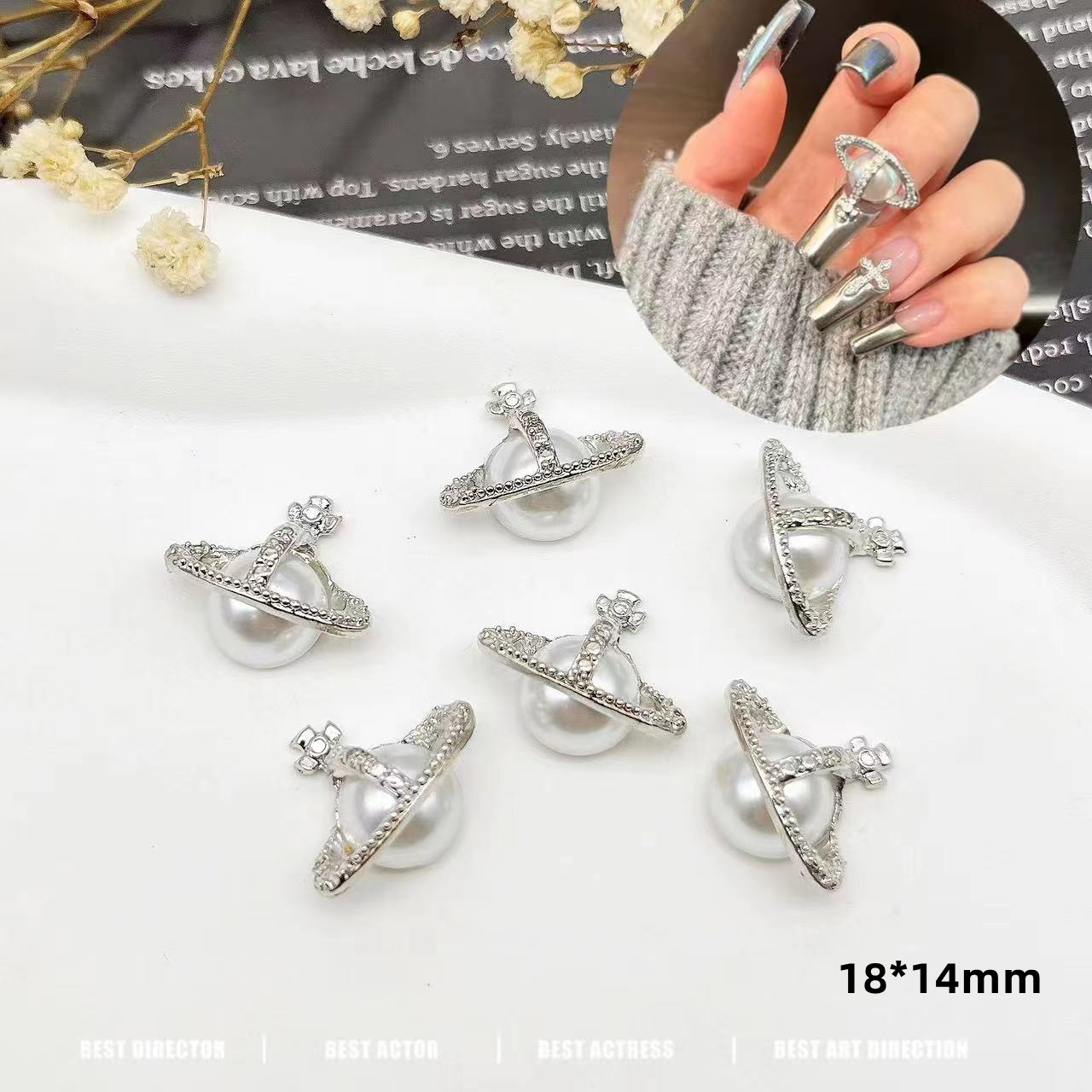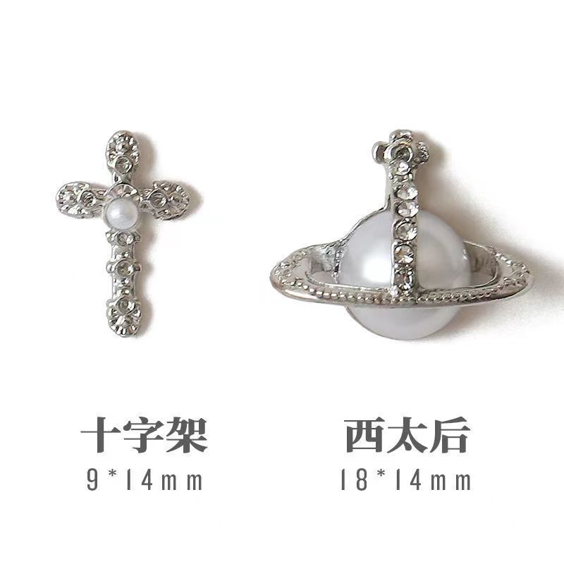 美甲饰品西太后同款土星珍珠十字架镀指甲珍珠钻美甲饰品爆款 English | 投诉