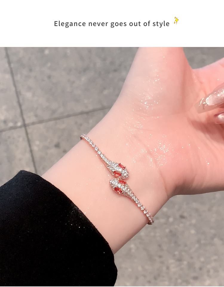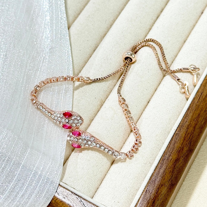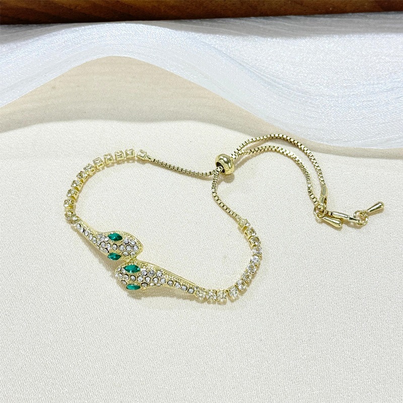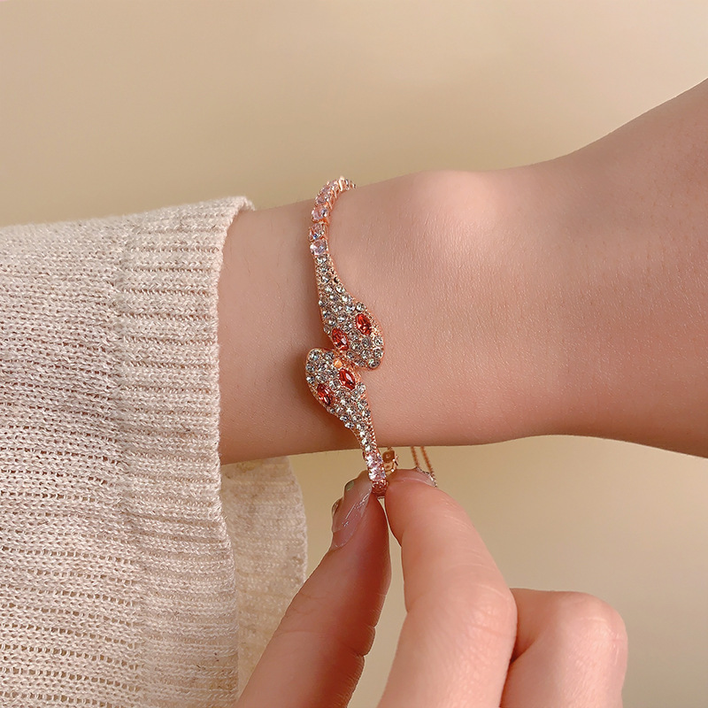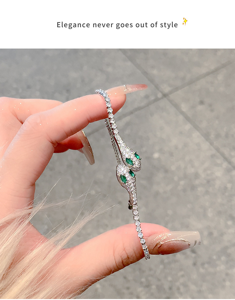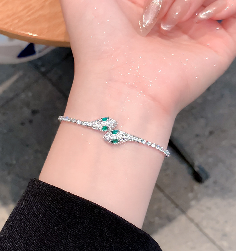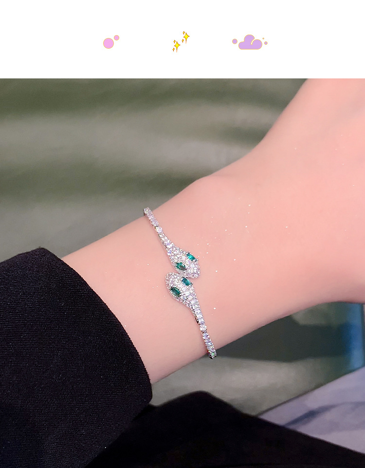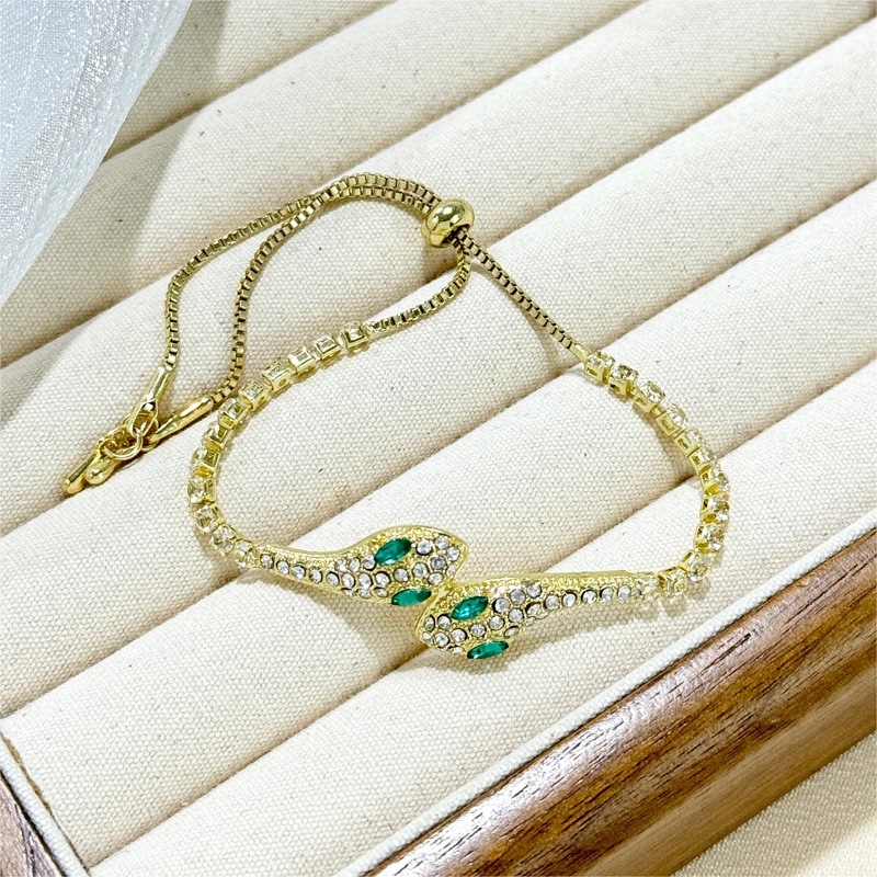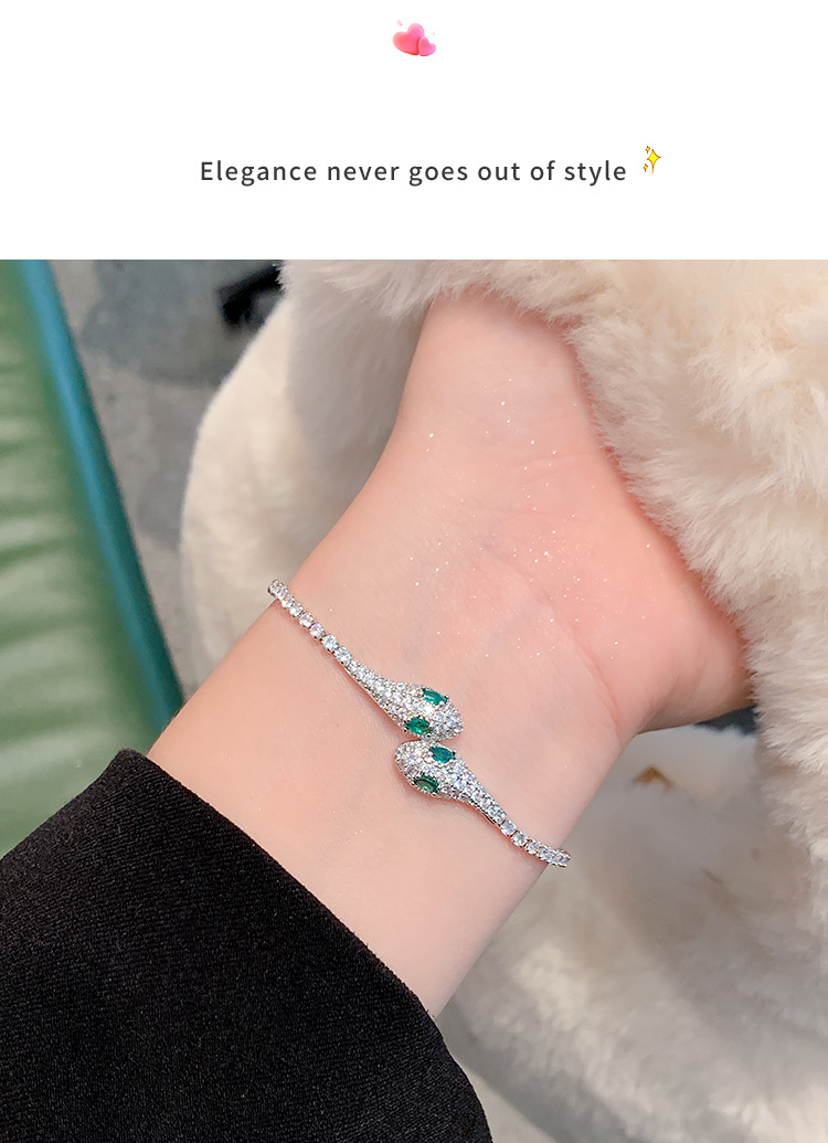 小蛇形满钻冰蓝灵蛇轻奢手镯女款2025新款抽拉手链小众高级感手饰 English | 投诉