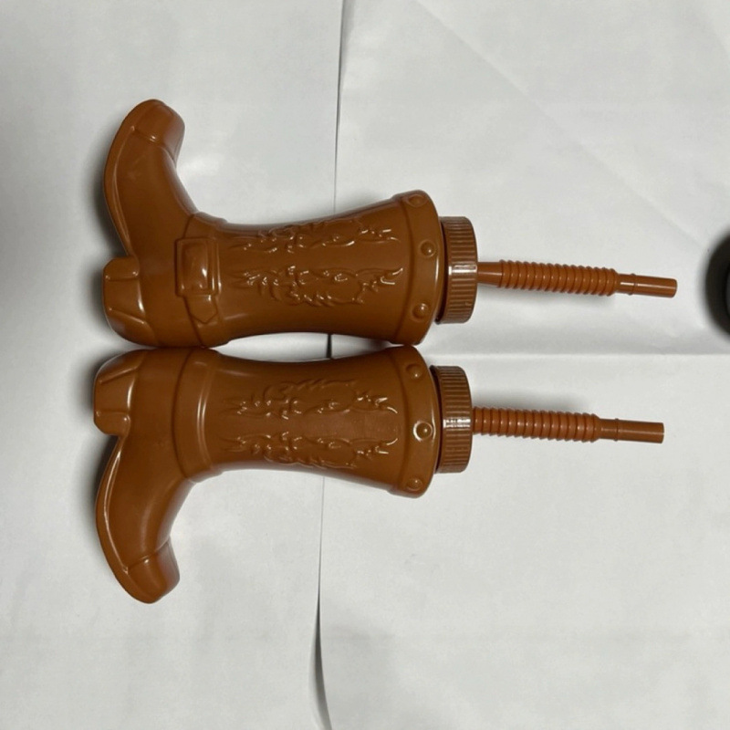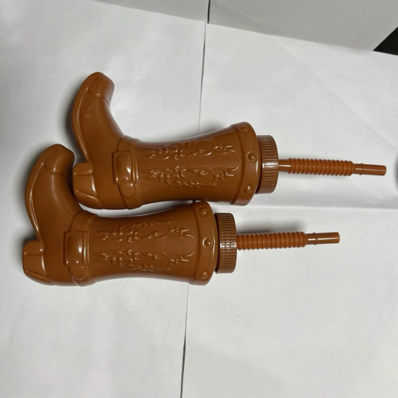 带吸管和盖子的塑料牛仔靴杯 西部主题派对用品与牛仔竞技派对装