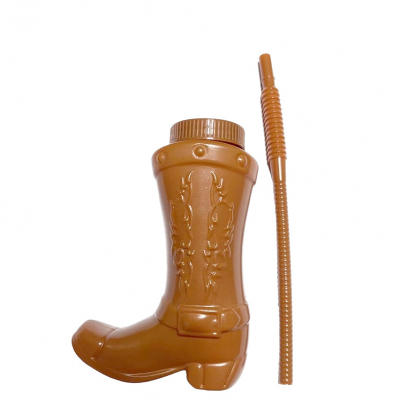 带吸管和盖子的塑料牛仔靴杯 西部主题派对用品与牛仔竞技派对装 English | 投诉