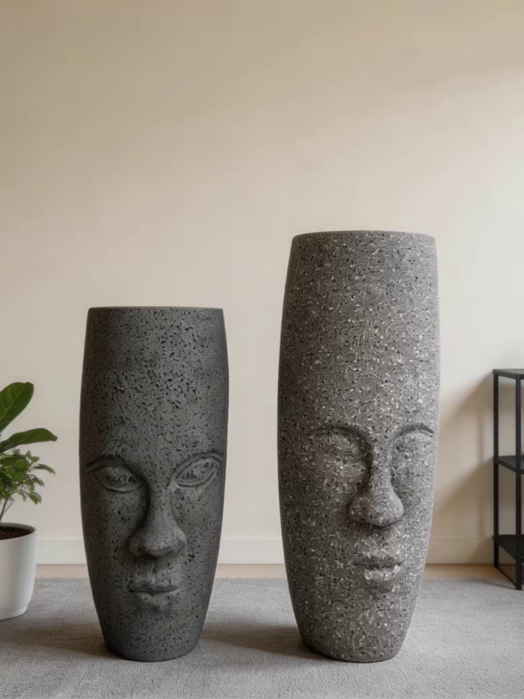 人脸造型玻璃钢花盆 | 水磨石纹理艺术花器