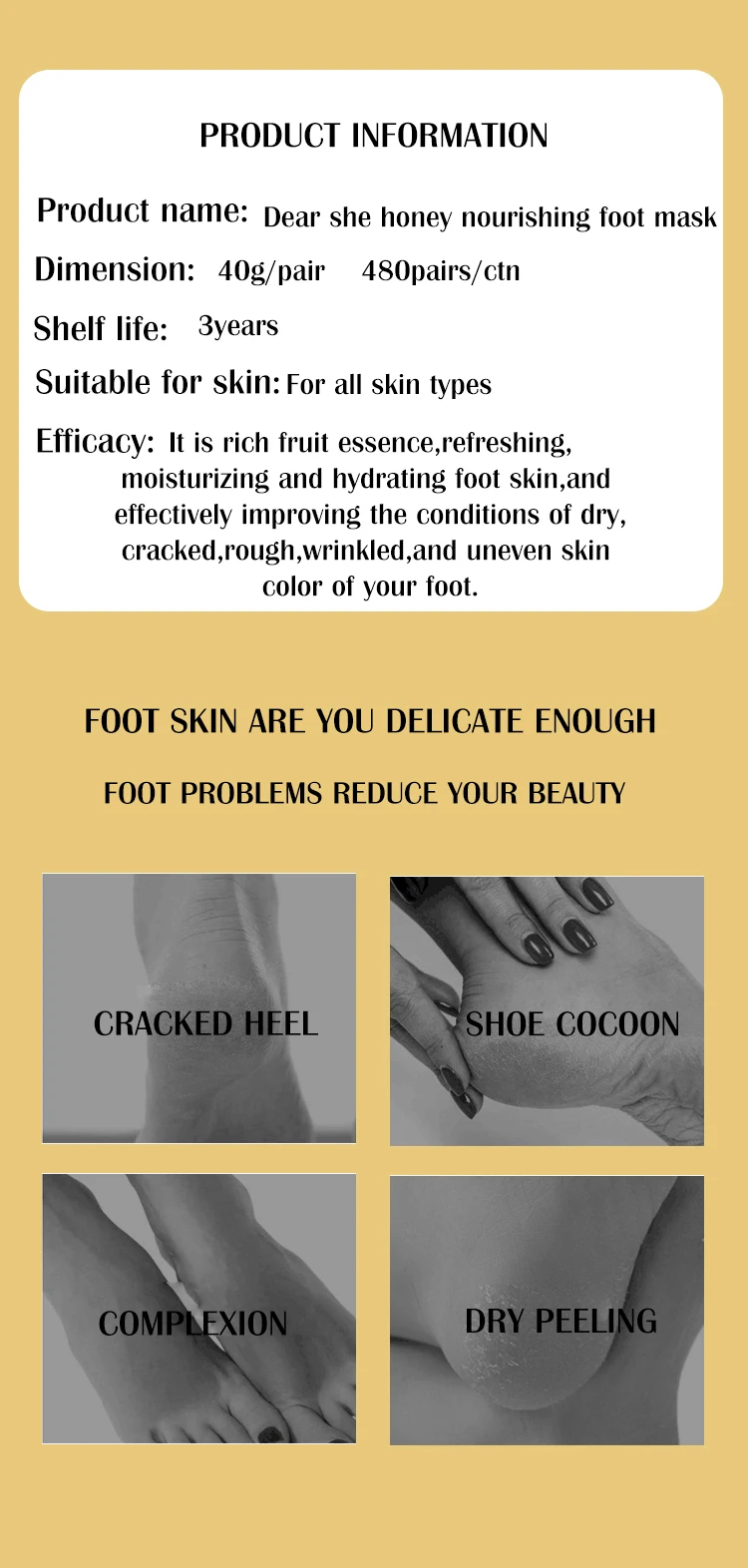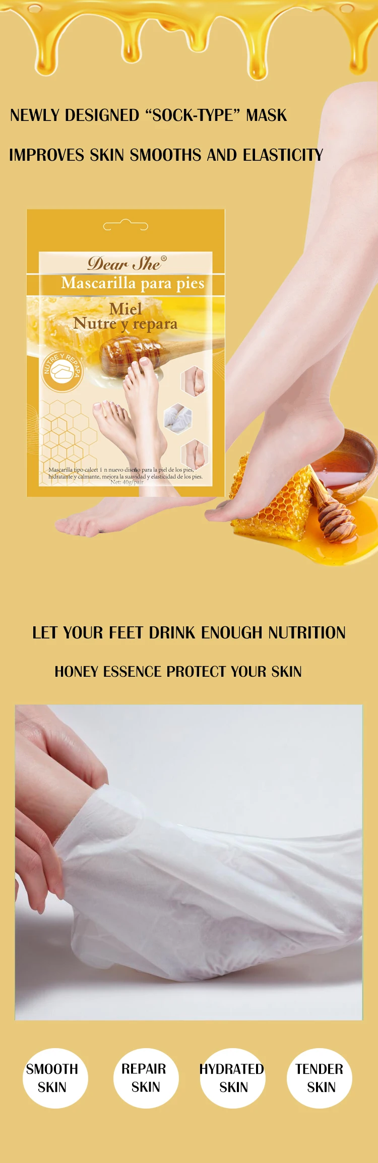跨境现货手膜足膜系列 DEAR SHE蜂蜜玫瑰润滑手膜足膜 外贸工厂