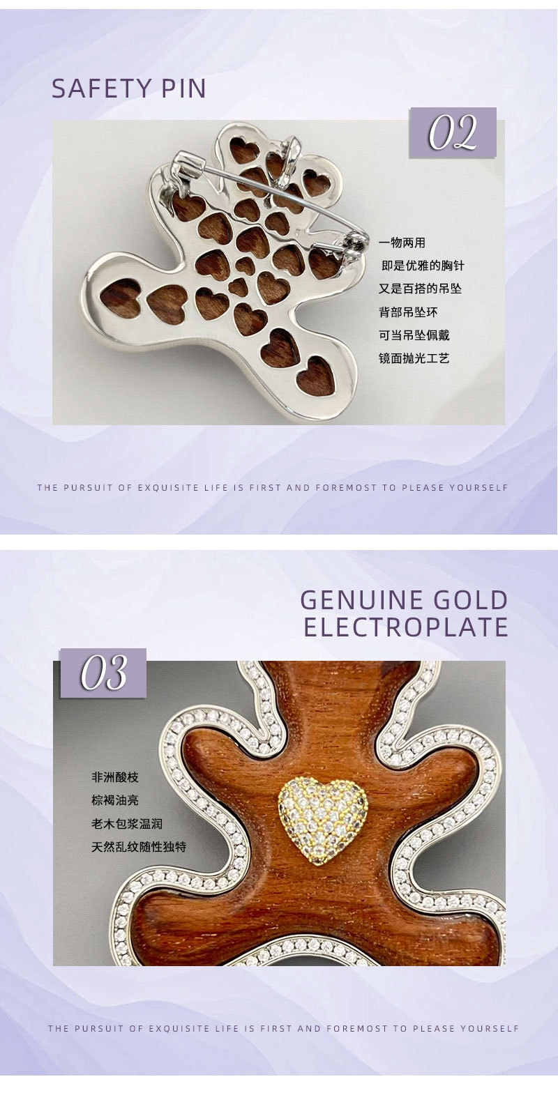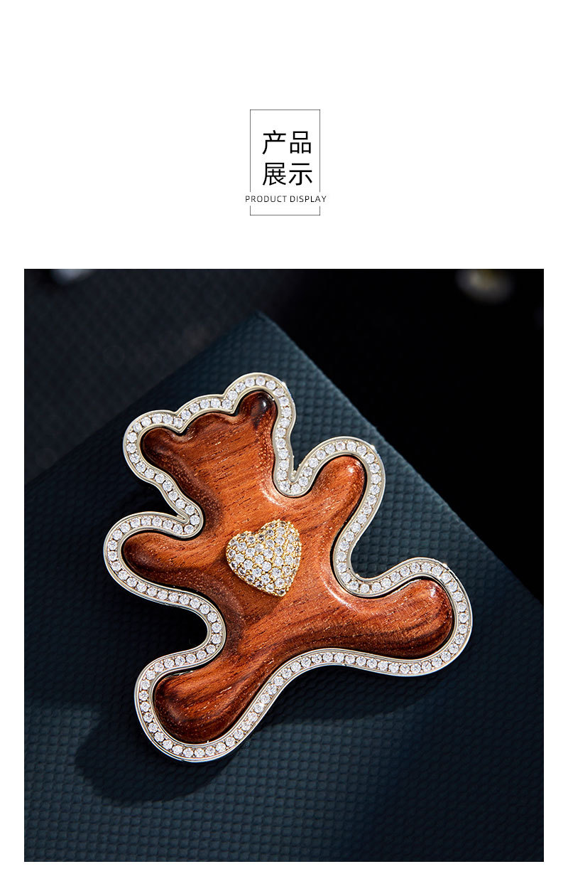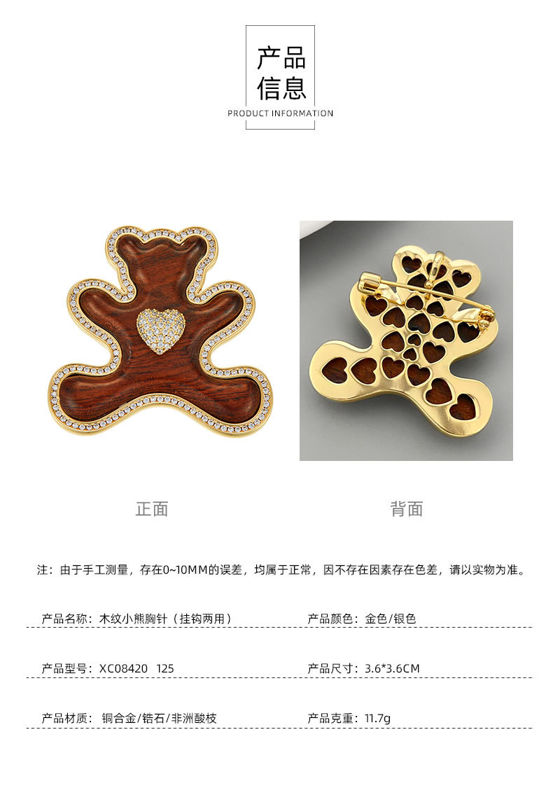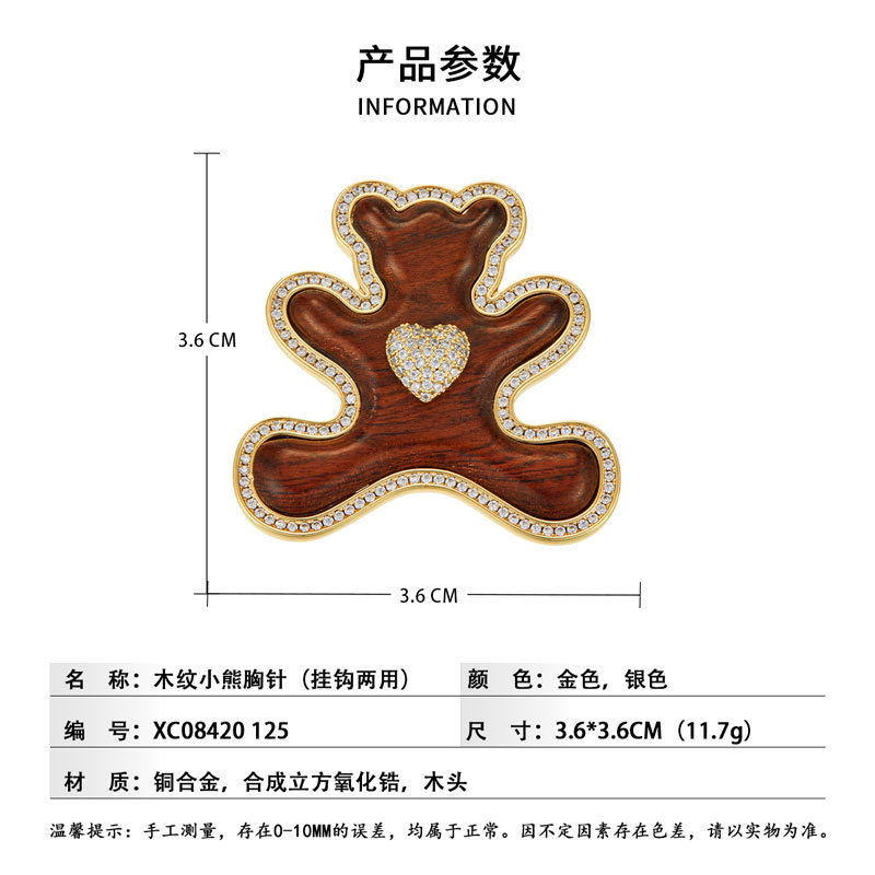 原创高级感木质小熊胸针萌趣可爱铜合金微镶锆石真金电镀精致别针 投诉