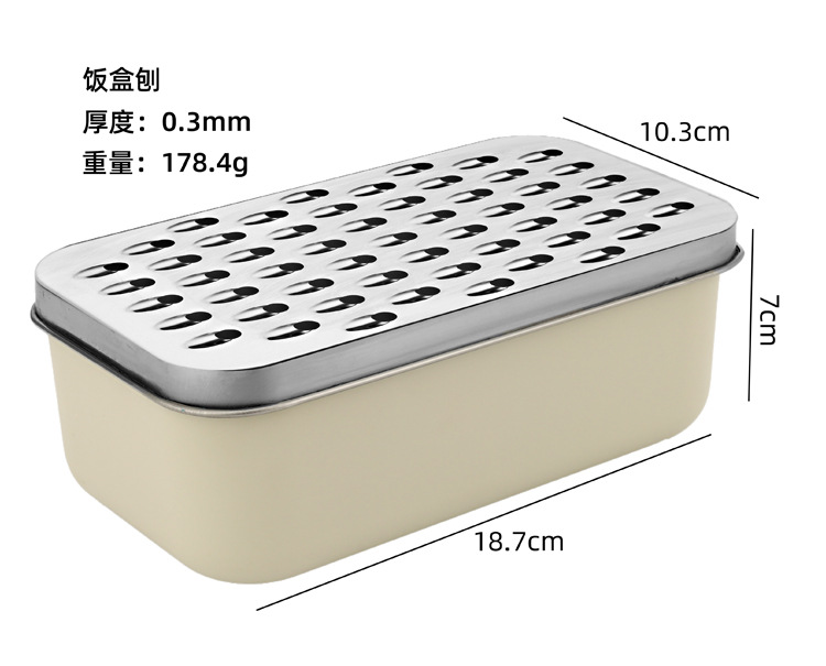 材质: 430刨片+PP盒 是否有专利: 否 产地: 阳江 颜色: 米白色【长方形盒刨】 适用对象: 所有人群 风格: 现代简约 是否跨境出口专供货源: 是 主要销售地区: 非洲,欧洲,南美,东南亚,北美,东北亚, 主要下游平台: ebay,亚马逊,wish,速卖通,独立 货号: 长方形饭盒刨 适用送礼场合: 所有地方 是否手工: 否 加工定制: 可以 重量: 0.178 kg/个