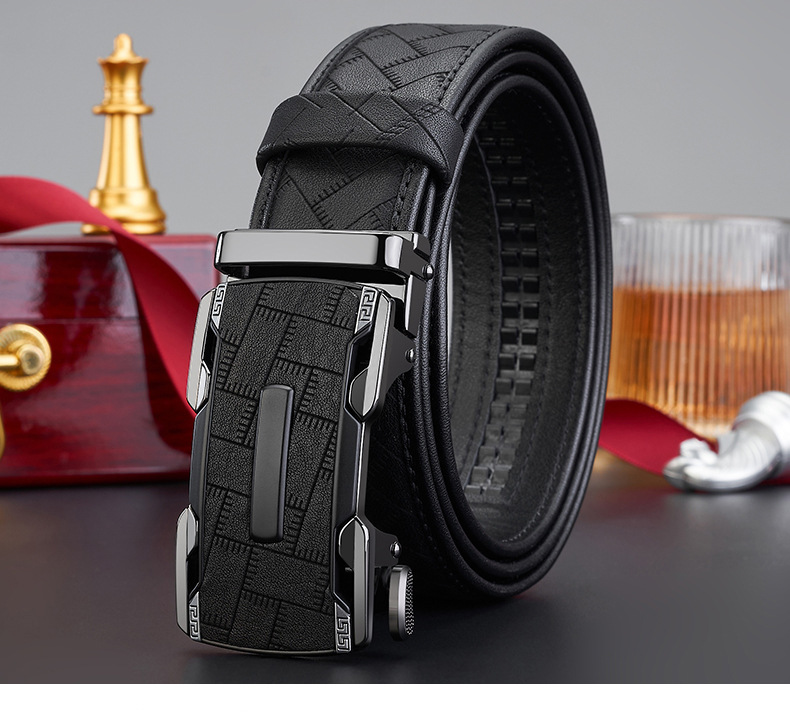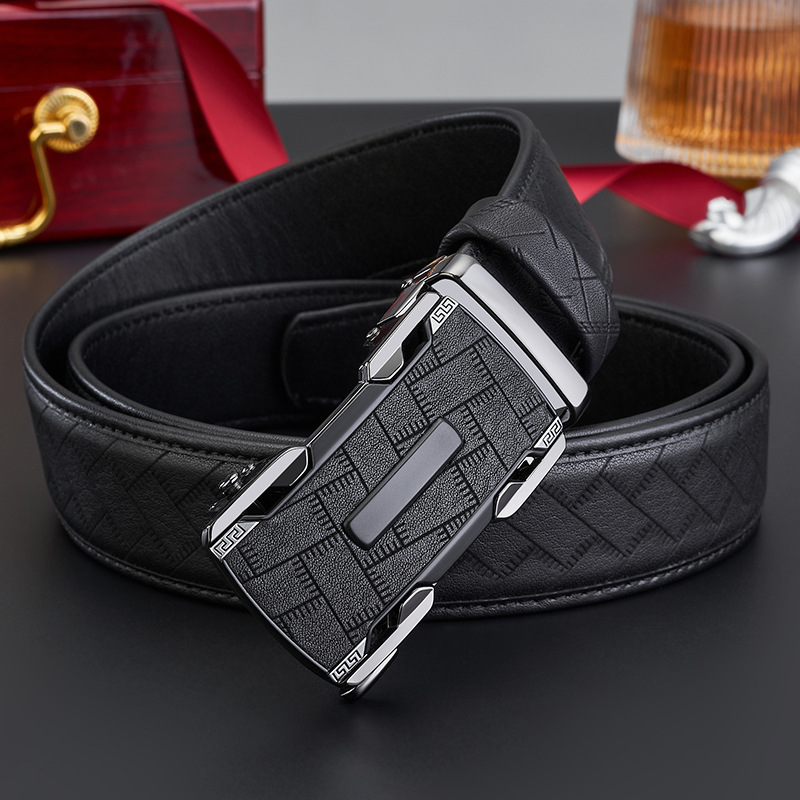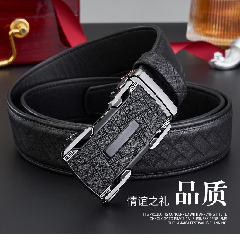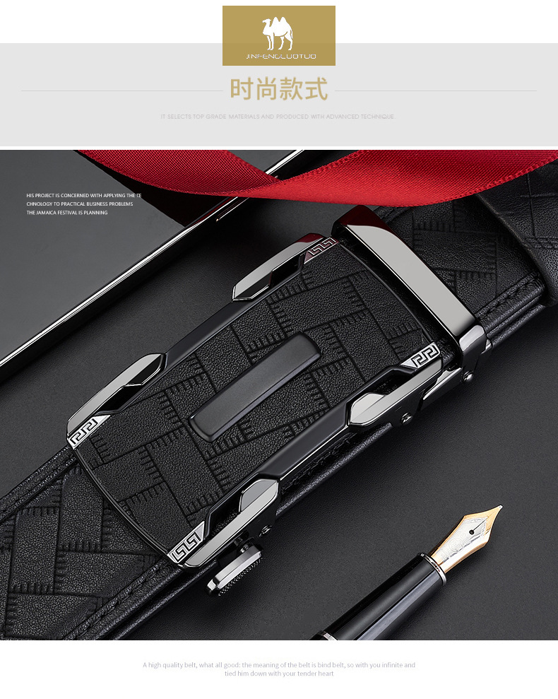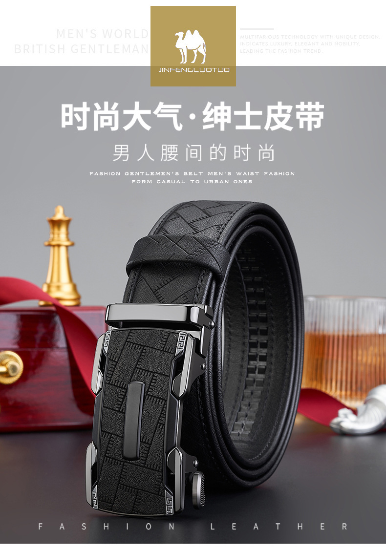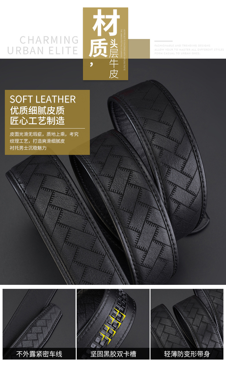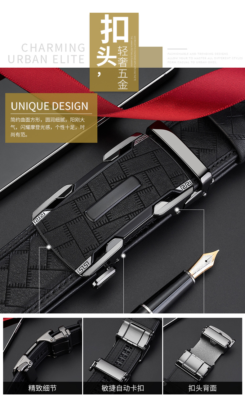 新款整张头层牛皮男士自动扣皮带男款高级商务百搭真皮腰带裤带男 English | 投诉