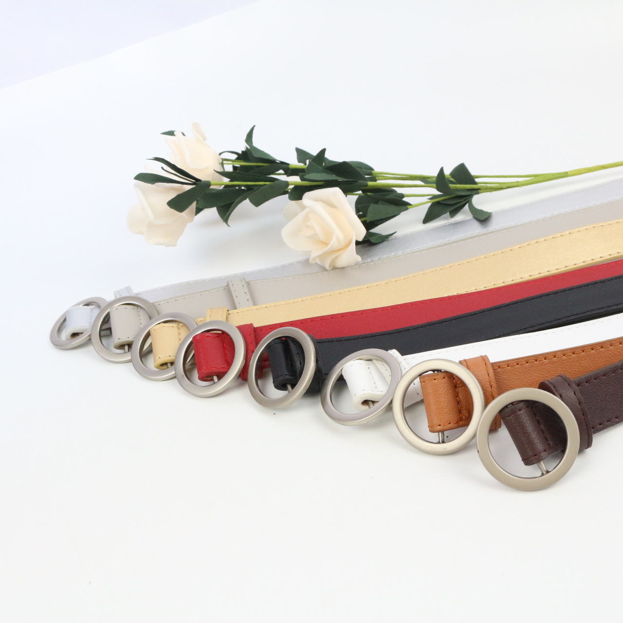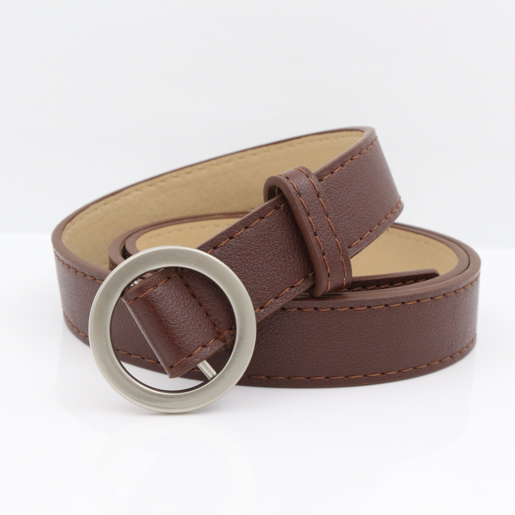材质: 仿皮 腰带扣材质: 合金 处理工艺: 电镀 宽度: 普通款(2-4cm) 扣合方式: 日字扣 风格: null,null,null 流行元素: null 颜色: 黑色,白色,粉色,驼色,咖啡 包装: pvc长带 货号: 2.5无孔圆扣 长度(CM): 105cm 尺码: 105厘米 主要下游平台: 淘宝,京东,ebay,亚马逊,速卖通,拼 是否跨境出口专供货源: 否 材质工艺: 车缝线 产地: 金华 风格分类: 个性风潮 鉴定机构: 无 重量: 0.2 kg/条
