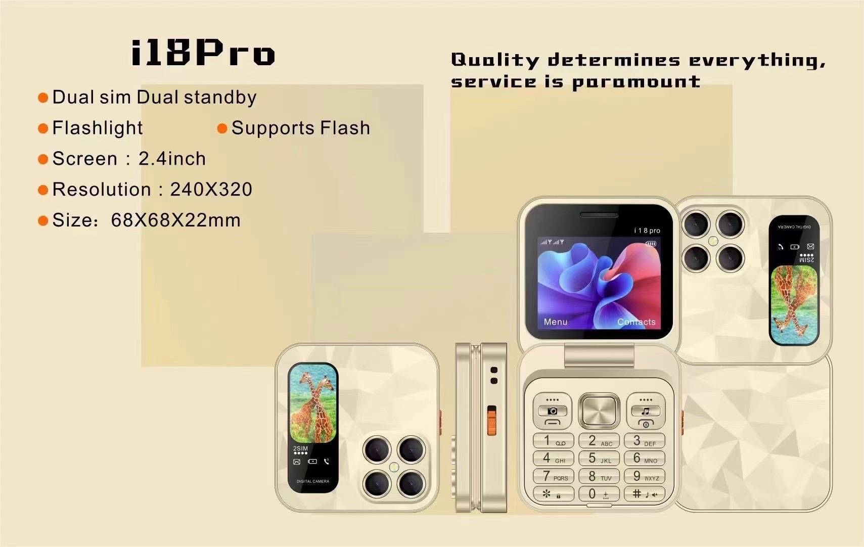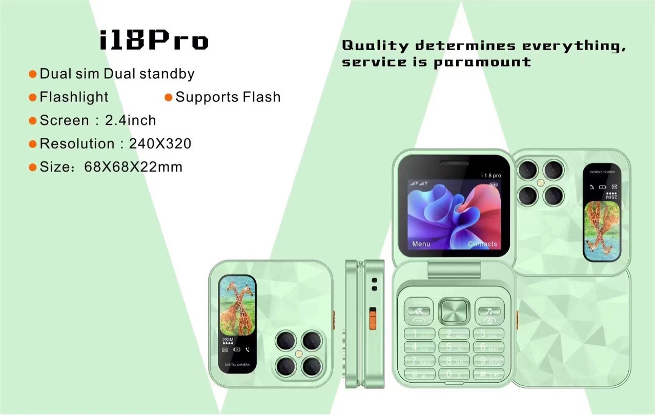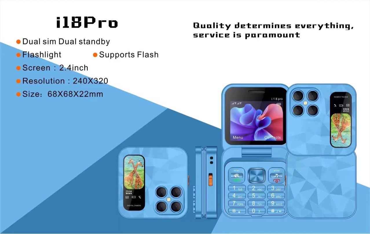 Mini flip Phone跨境新款i18pro翻盖手机2.4寸双卡2G按键折叠手机 English | 投诉
