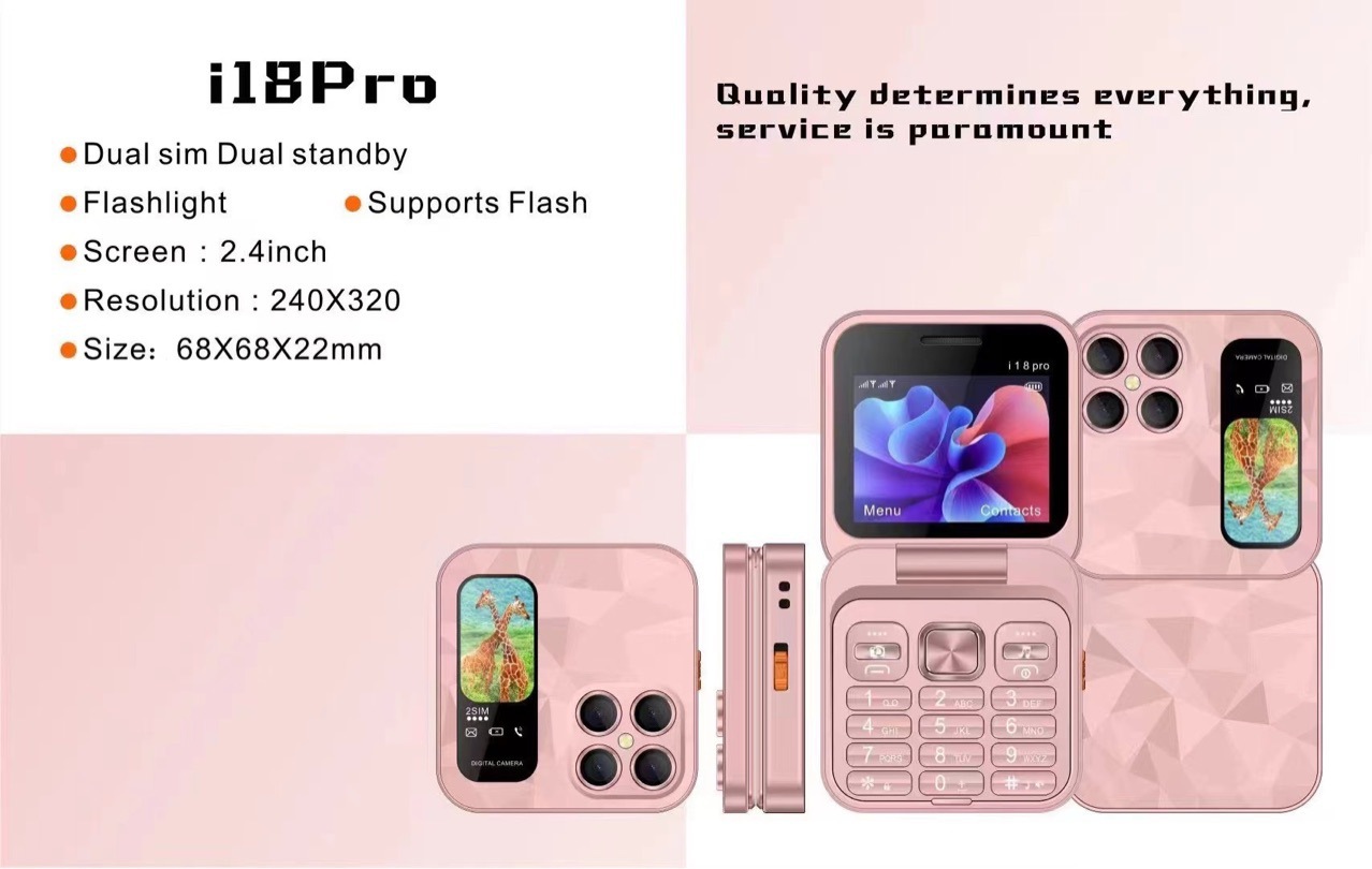 Mini flip Phone跨境新款i18pro翻盖手机2.4寸双卡2G按键折叠手机