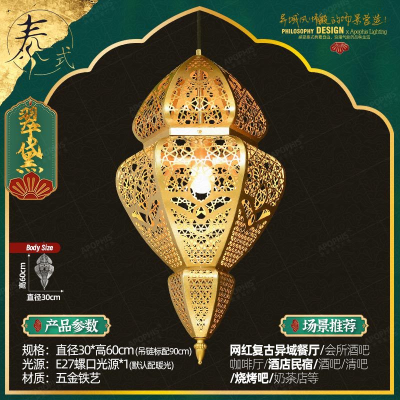 这款灯具汲取了异域阿拉伯风格与东南亚泰式魅力的精髓,创造出符合艺术气息的设计。