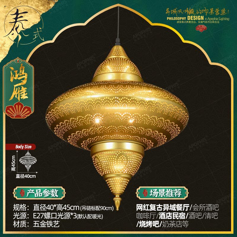 这款灯具汲取了异域阿拉伯风格与东南亚泰式魅力的精髓,创造出符合艺术气息的设计。
