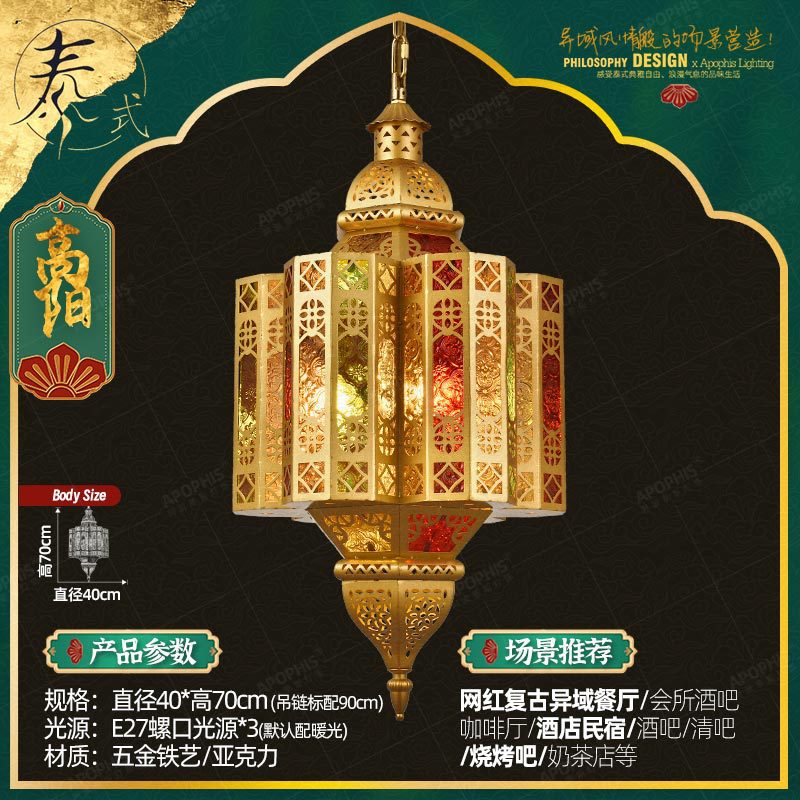 这款灯具汲取了异域阿拉伯风格与东南亚泰式魅力的精髓,创造出符合艺术气息的设计。