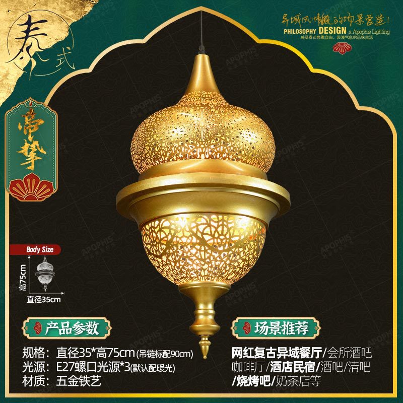 这款灯具汲取了异域阿拉伯风格与东南亚泰式魅力的精髓,创造出符合艺术气息的设计。