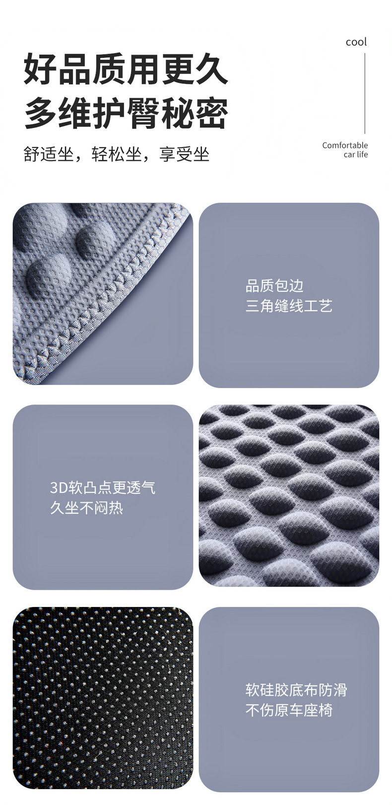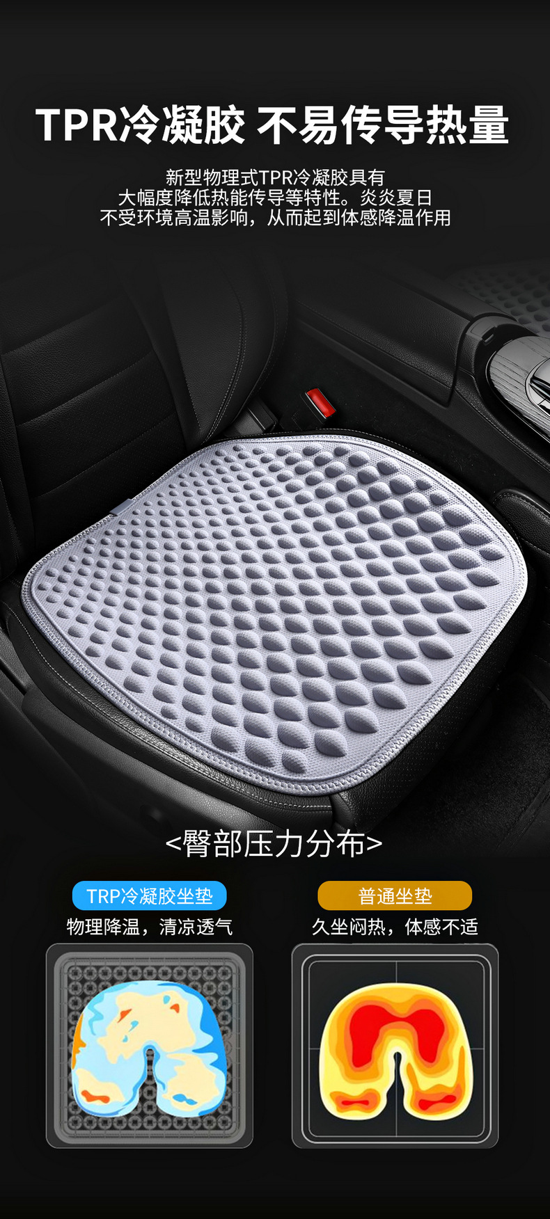 跨境新款TPE凝胶汽车冰感坐垫夏季透气释压凝胶汽车坐垫 English | 投诉