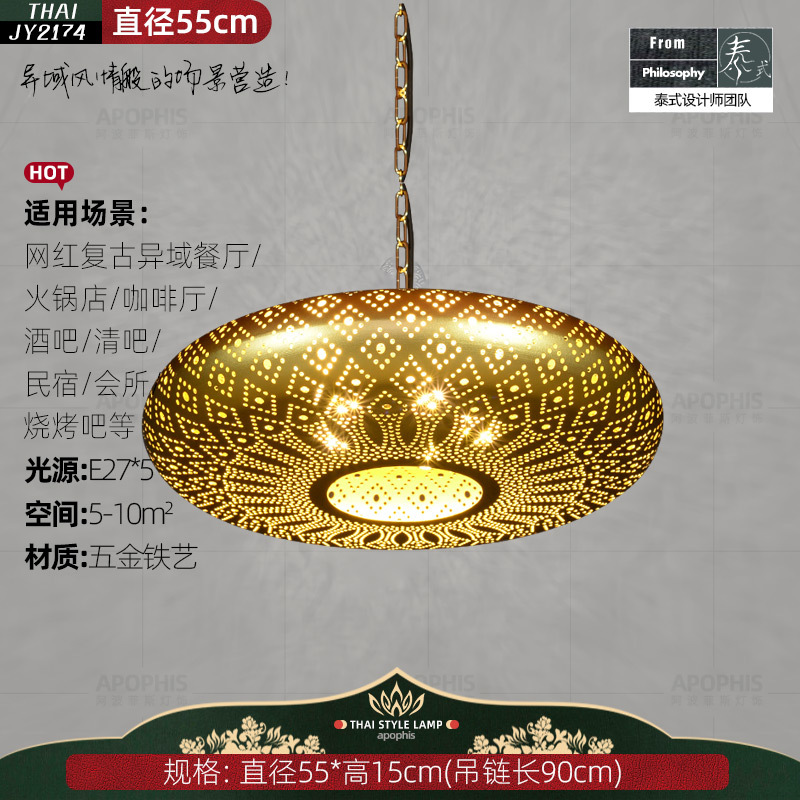 这款东南亚风格蚀刻吊灯适用于多种场所,无论是客厅、餐厅还是茶室,都能为空间增添一丝轻奢感。