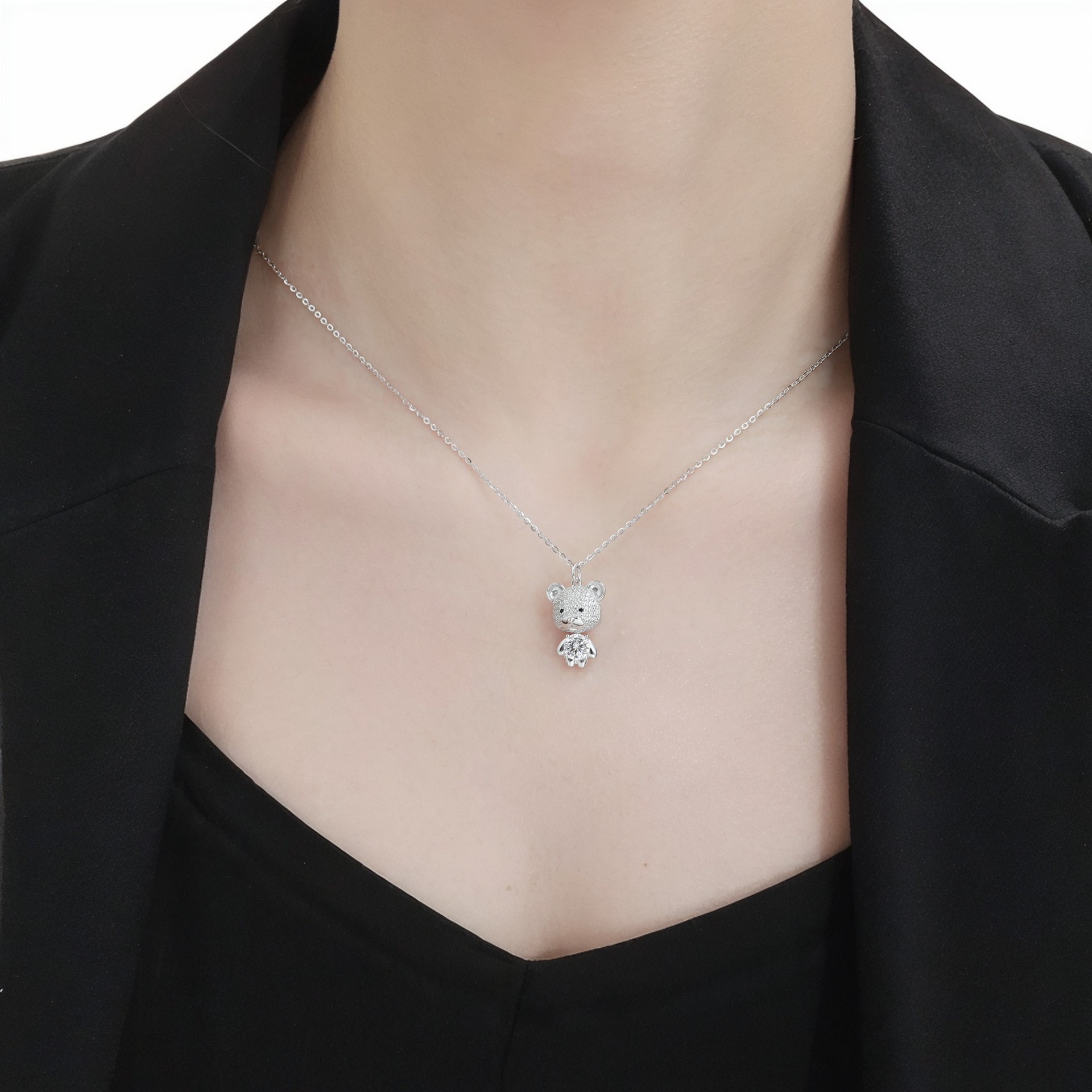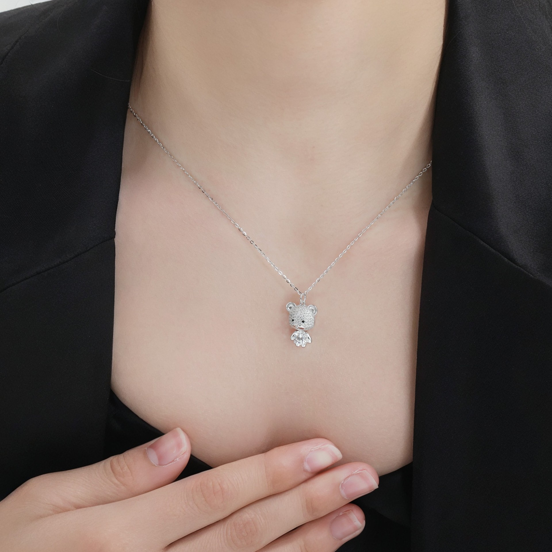 跨境韩版新款满钻小熊项链轻奢高级感创意小众设计时尚动物吊坠 English | 投诉